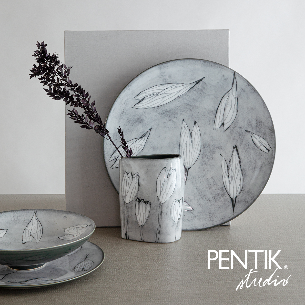 Pentik Studio makes ceramic art a part of home decor. The ceramic pieces in the Pentik Studio collection are made in small batches and decorated by hand with wax, stencils or by hand-painting onto glazed products. Pentik Studio artist Anu Pentik uses various painting techniques and bold colors in the production. The unique pieces in the Pentik Studio collection can be used as interior elements as well as for table setting.