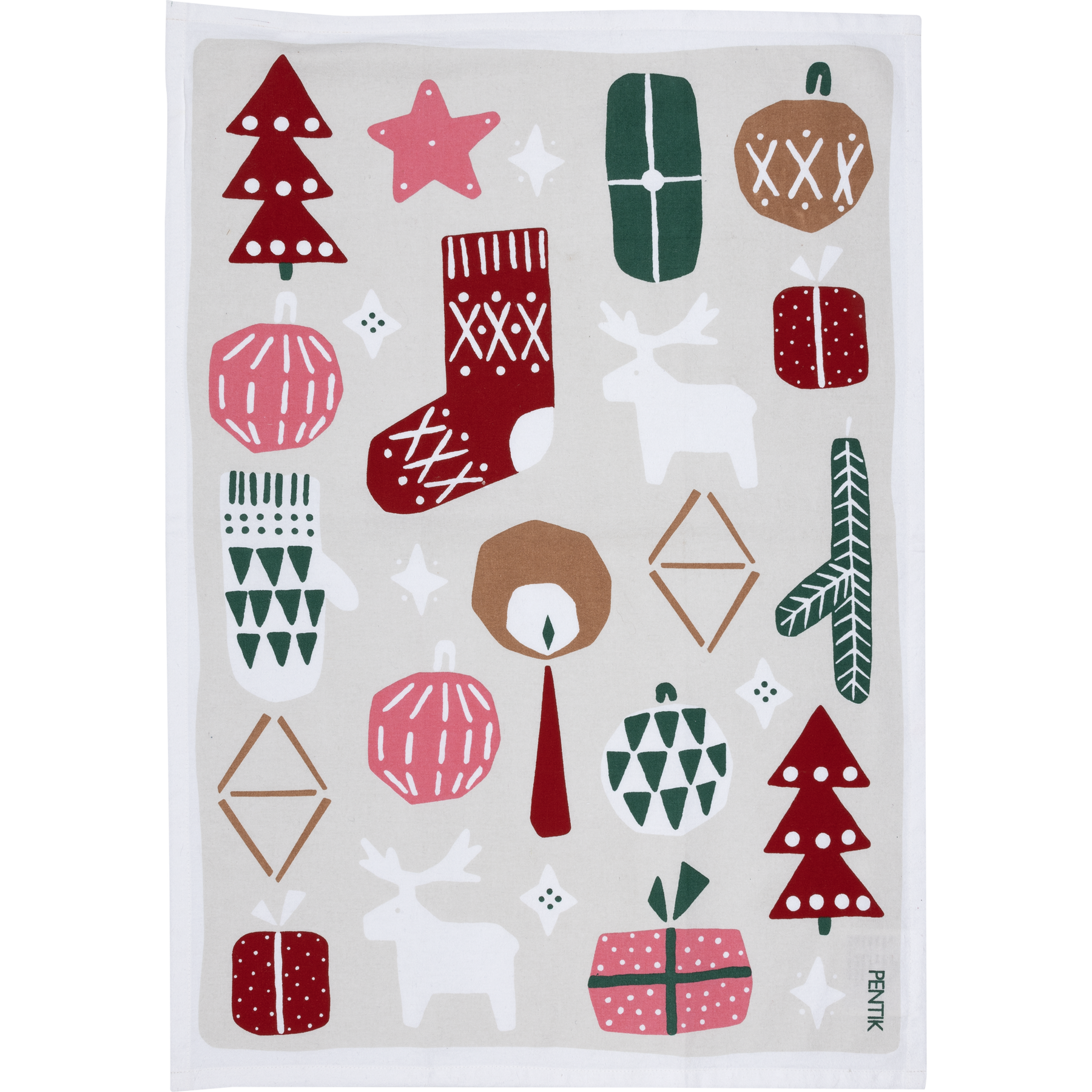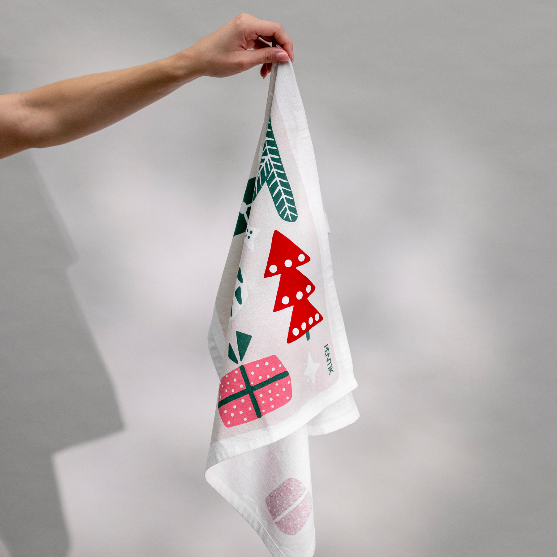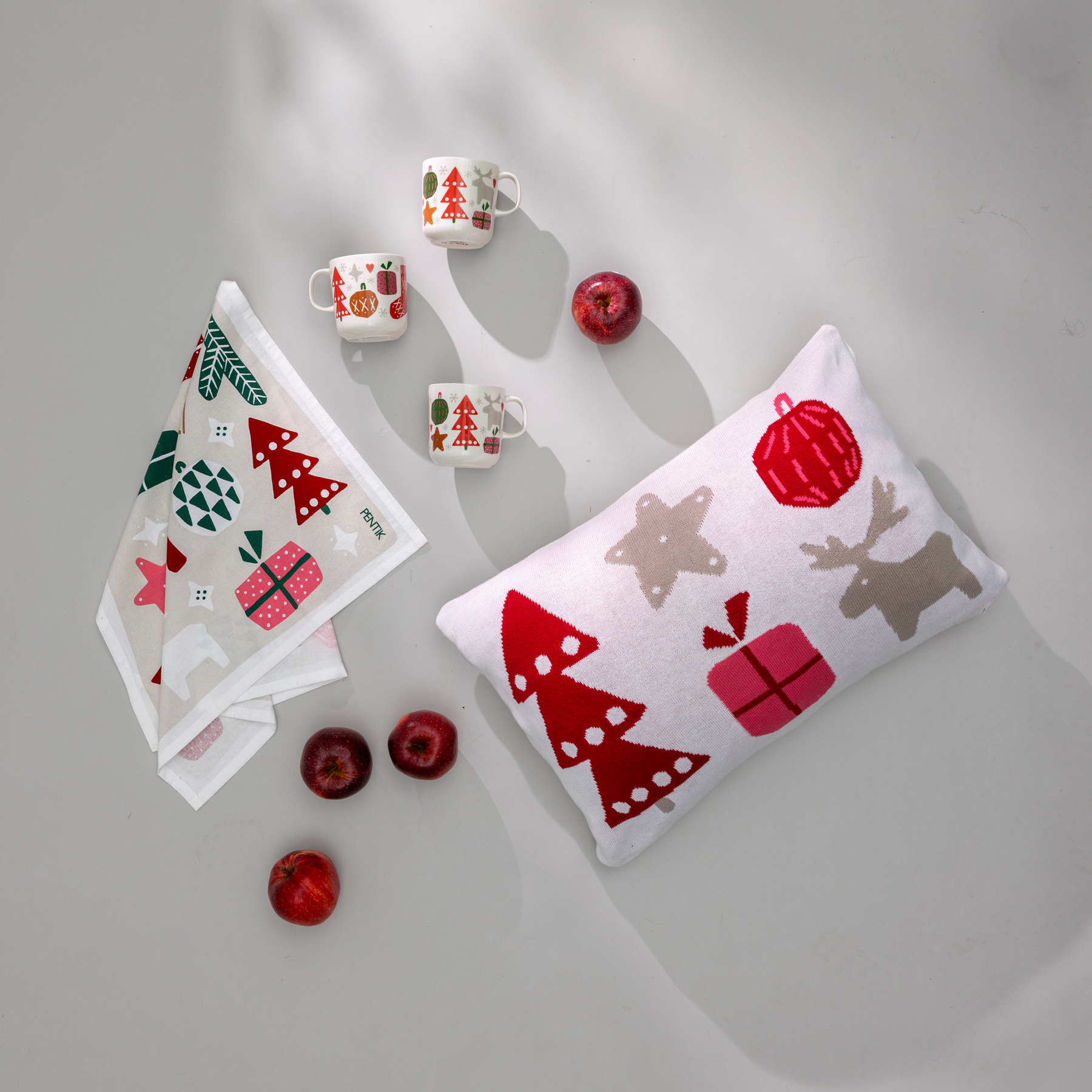 The cheerfully patterned Aatto (The Christmas Eve) kitchen towels will put a smile on your face. The graphic illustrations designed by Minna Niskakangas are familiar from the Finnish Christmas tradition. The size of this Christmas kitchen towel is 47x70 cm. 100 % cotton.