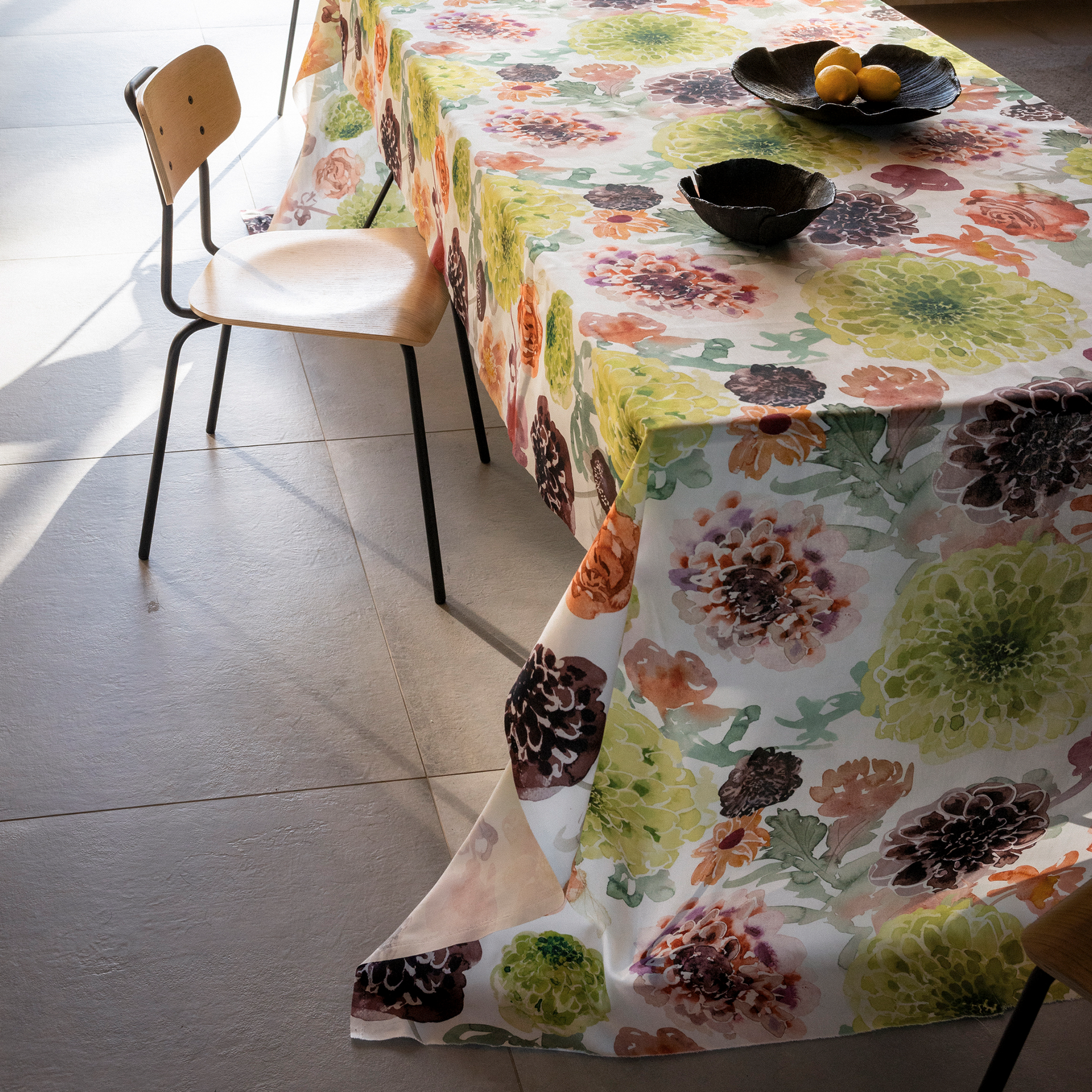 The trendy dahlia blooms well into autumn, bearing the memories of summer with its plush flowers into our homes as the weather gets chillier and the days shorten. The warm and glowing colours of Lasse Kovanen's brushwork Daalia make summer last a little longer. The pattern has both strength and sensitivity, and its colours give energy.