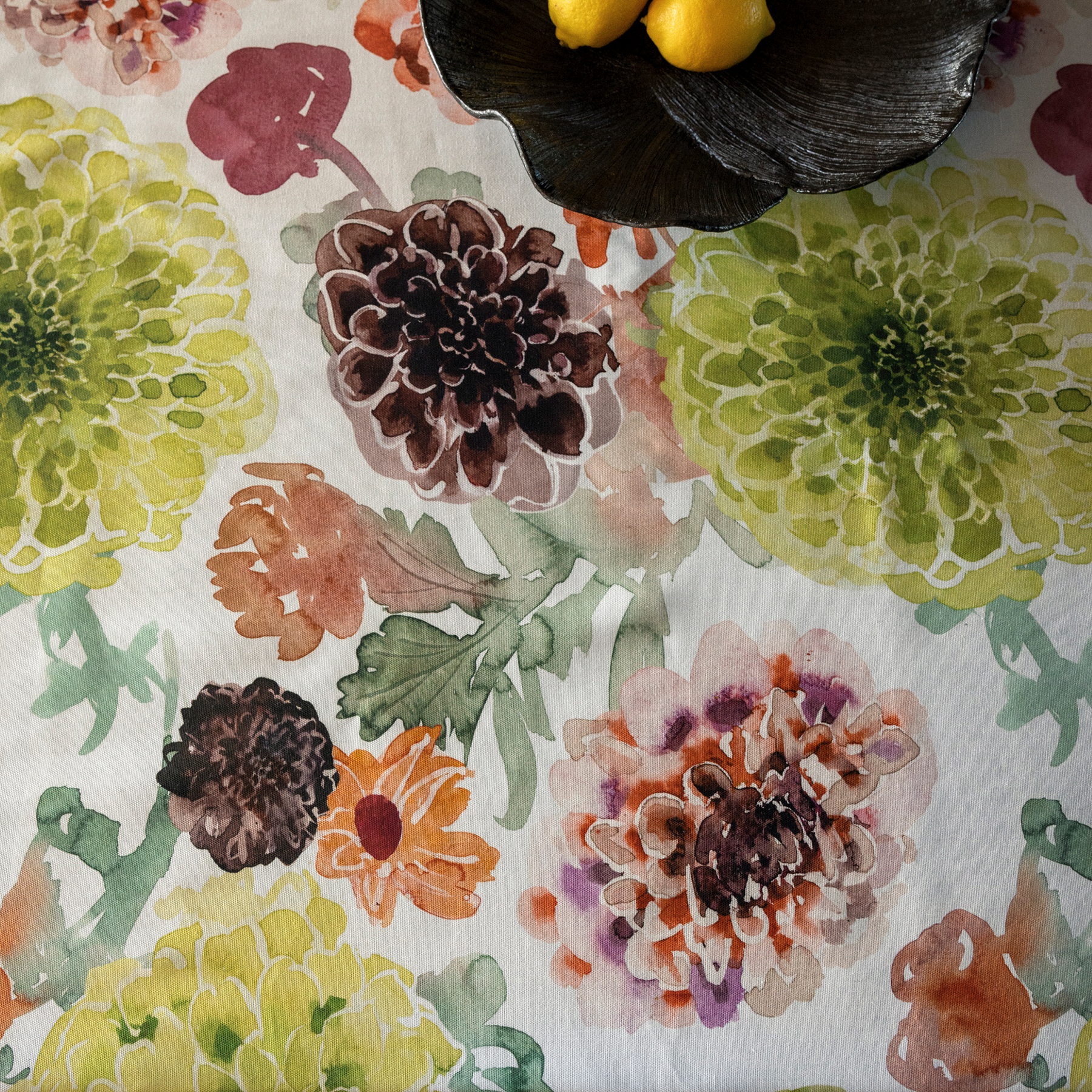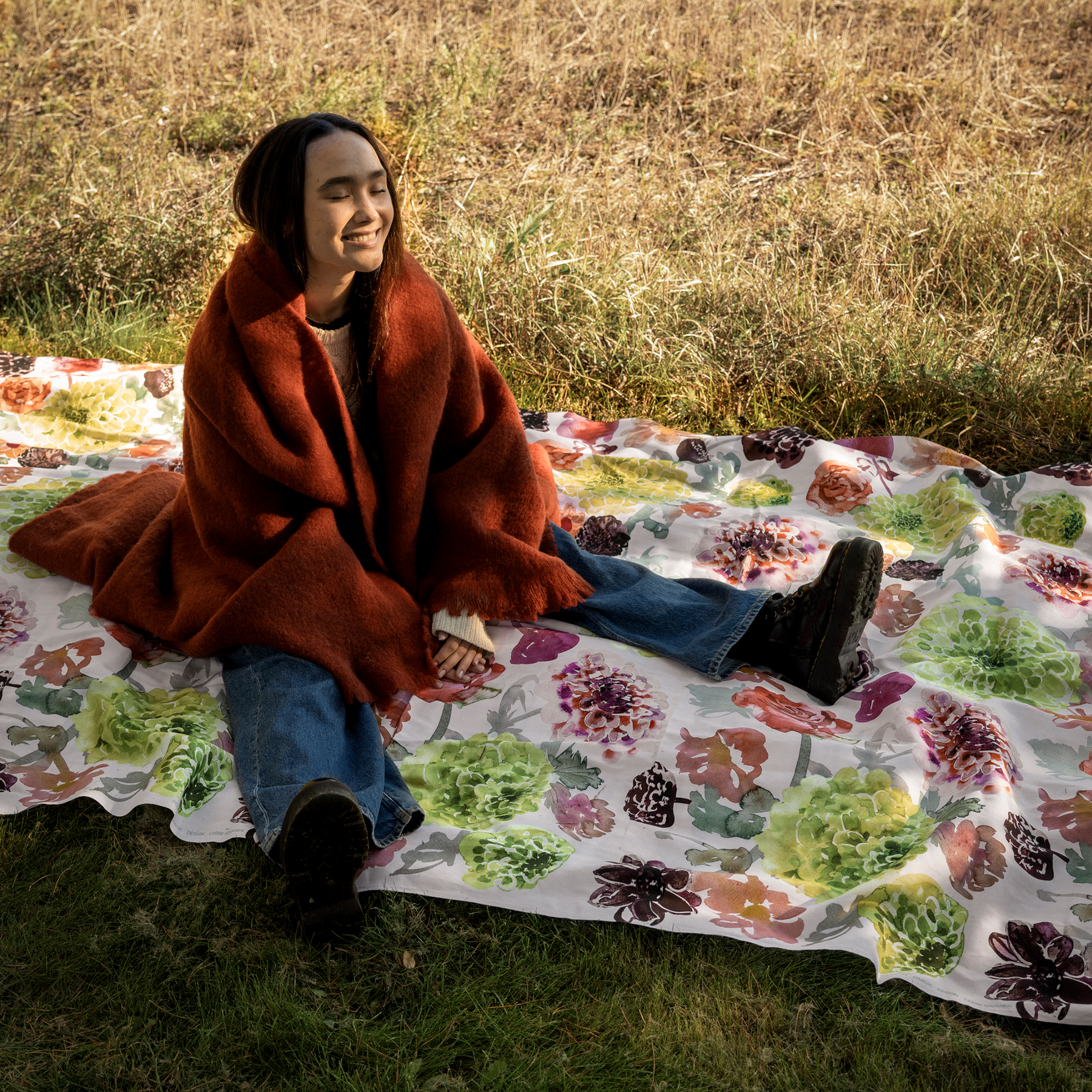 The trendy dahlia blooms well into autumn, bearing the memories of summer with its plush flowers into our homes as the weather gets chillier and the days shorten. The warm and glowing colours of Lasse Kovanen's brushwork Daalia make summer last a little longer. The pattern has both strength and sensitivity, and its colours give energy.