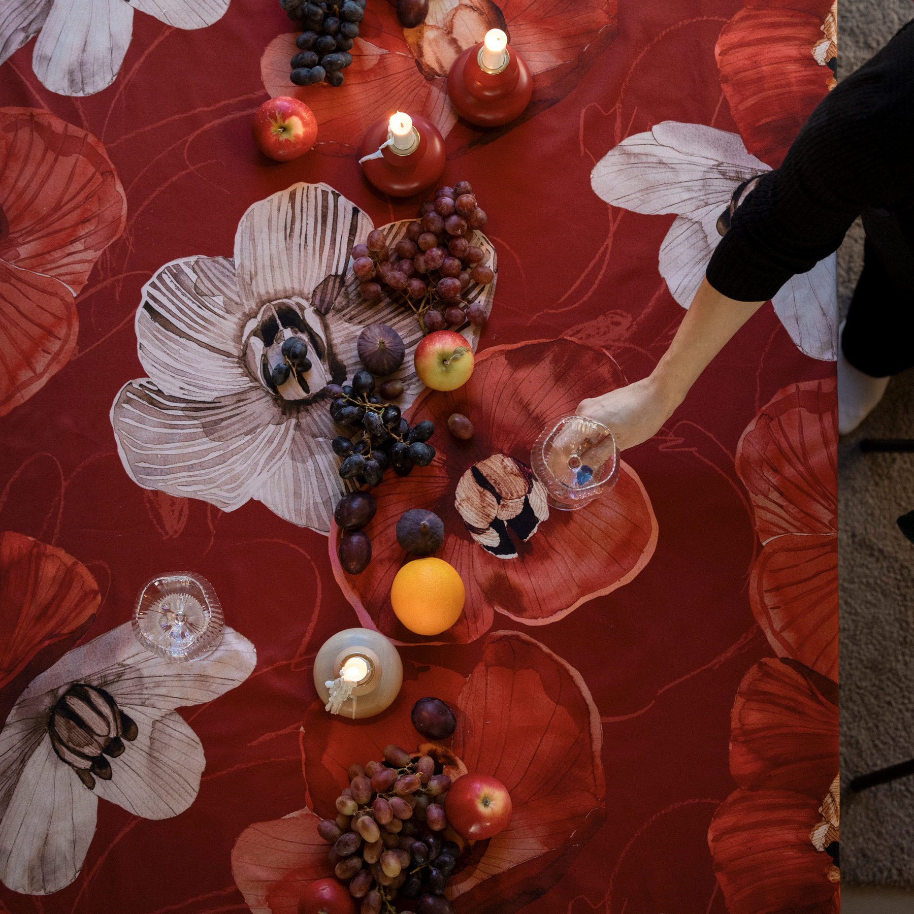 "Dream, dream, dream. And always look ahead." This life philosophy has carried ceramic artist Anu Pentik from decade to decade and has made her wildest dreams come to blossom. As a tribute to Anu, and to her life's work, Lasse Kovanen designed the Haave (Daydream) series. It features Anu's iconic ceramic flower sculptures, with colours taken directly from northern nature. The warm and cosy red colouring is perfect for the festive season. The Haave collection includes bed linen, tablecloths and cushion covers as well as ceramic tableware made in Posio, Lapland.