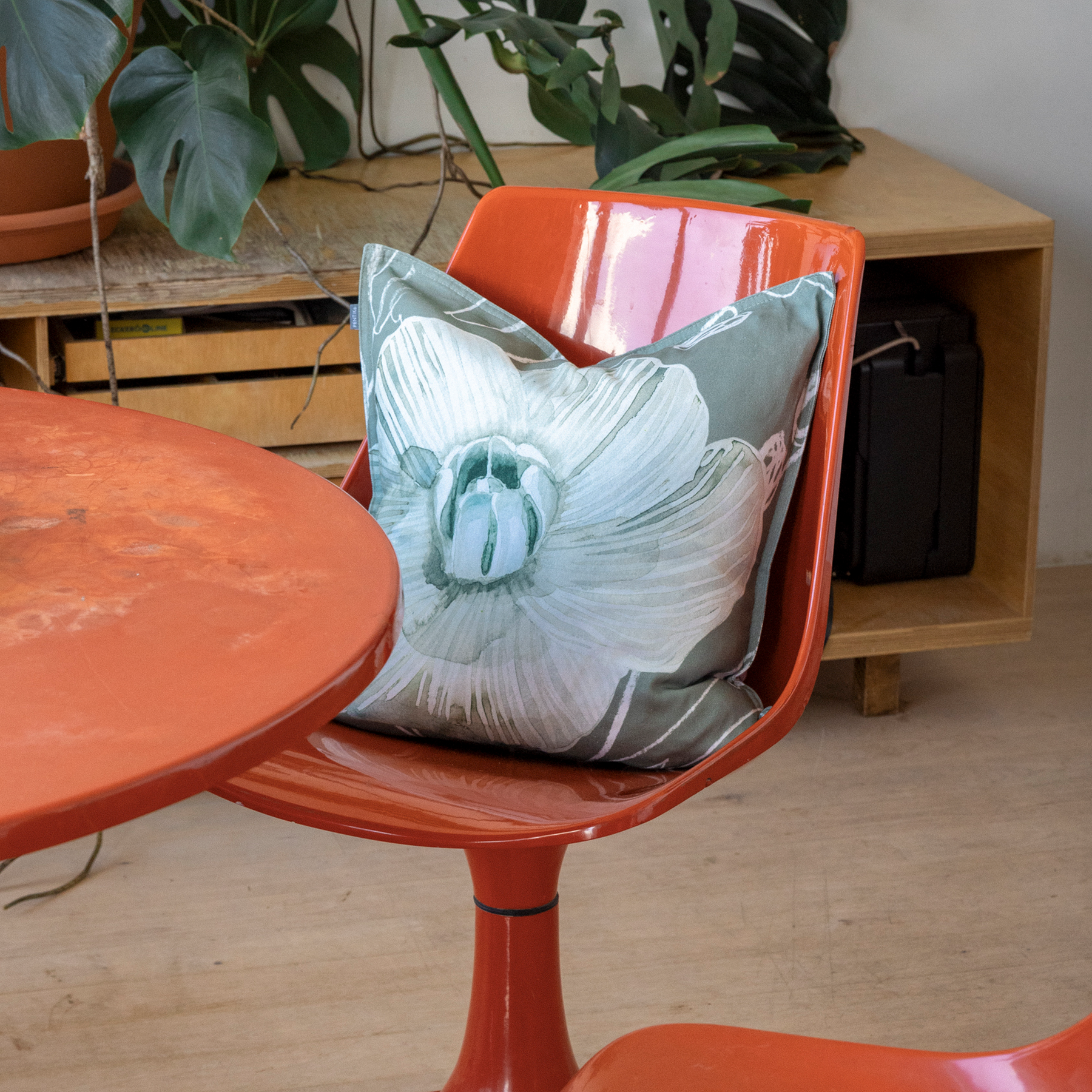 "Dream, dream, dream. And always look ahead." This life philosophy has carried ceramic artist Anu Pentik from decade to decade and has made her wildest dreams come to blossom. As a tribute to Anu, and to her life's work, Lasse Kovanen designed the Haave (Daydream) series. It features Anu's iconic ceramic flower sculptures, with colours taken directly from northern nature. A bright orange from autumn, a calm white from winter, a dark burgundy from a spring and a vibrant green from summer. The Haave collection includes bed linen, tablecloths and cushion covers as well as ceramic tableware made in Posio, Lapland.