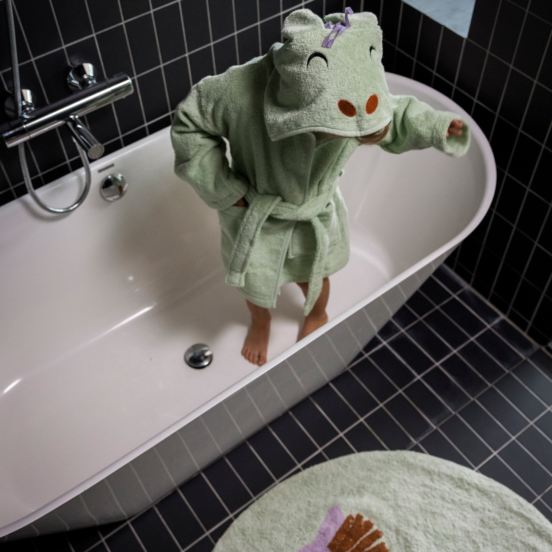 The Heppa bathrobe is suitable for children around six years old or 120 cm tall. Made of 100 % cotton terry.