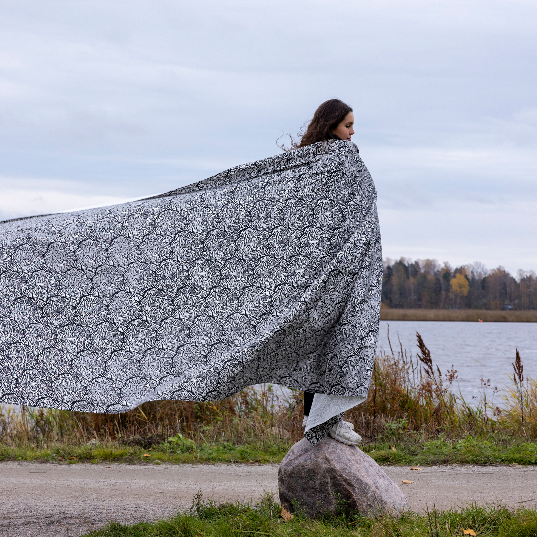 Lichen usually live in rough conditions like tree trunks and rocks. But they can also be picky and need clean air to grow. That´s why they flourish in Finnish nature. While designing the Jäkälä (Lichen) collection, Minna Niskakangas thought her childhood near forests. She painted an organic and ornamental print originally on plywood.