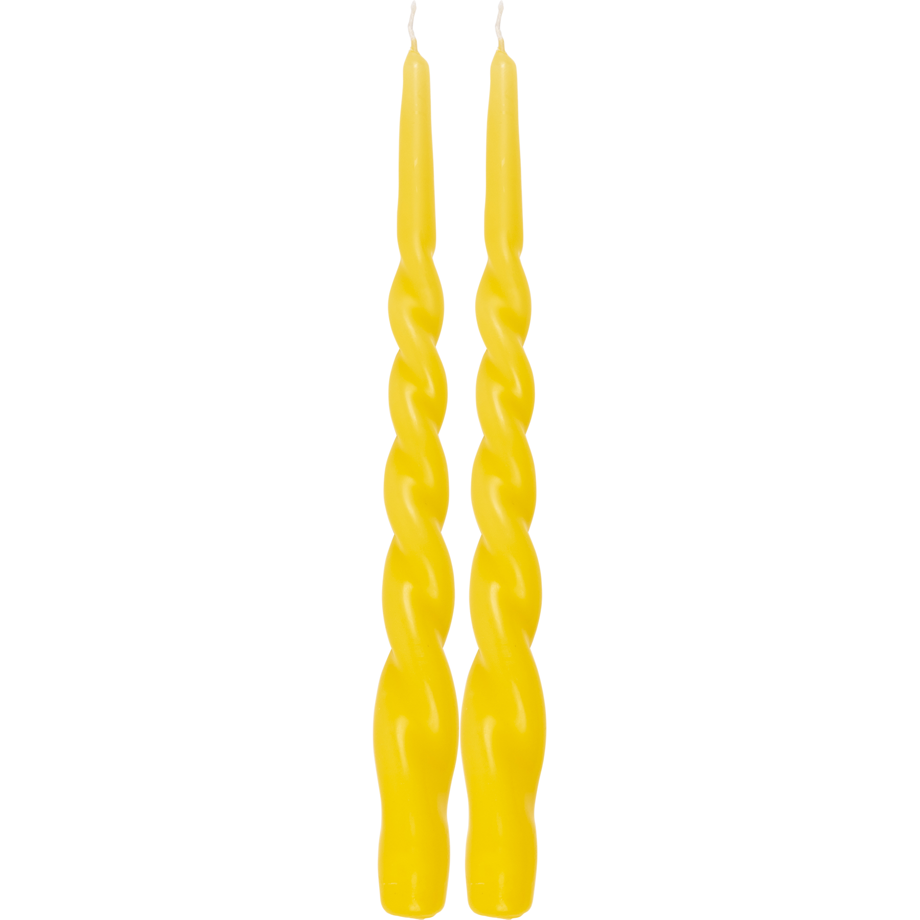Length of the twisted dinner candle is 28 cm and there's two candles in the package. Burning time approximately 6 hours. When burning the candle on a glass candleholder, do not burn it all the way to the end to avoid the flame from breaking the glass.