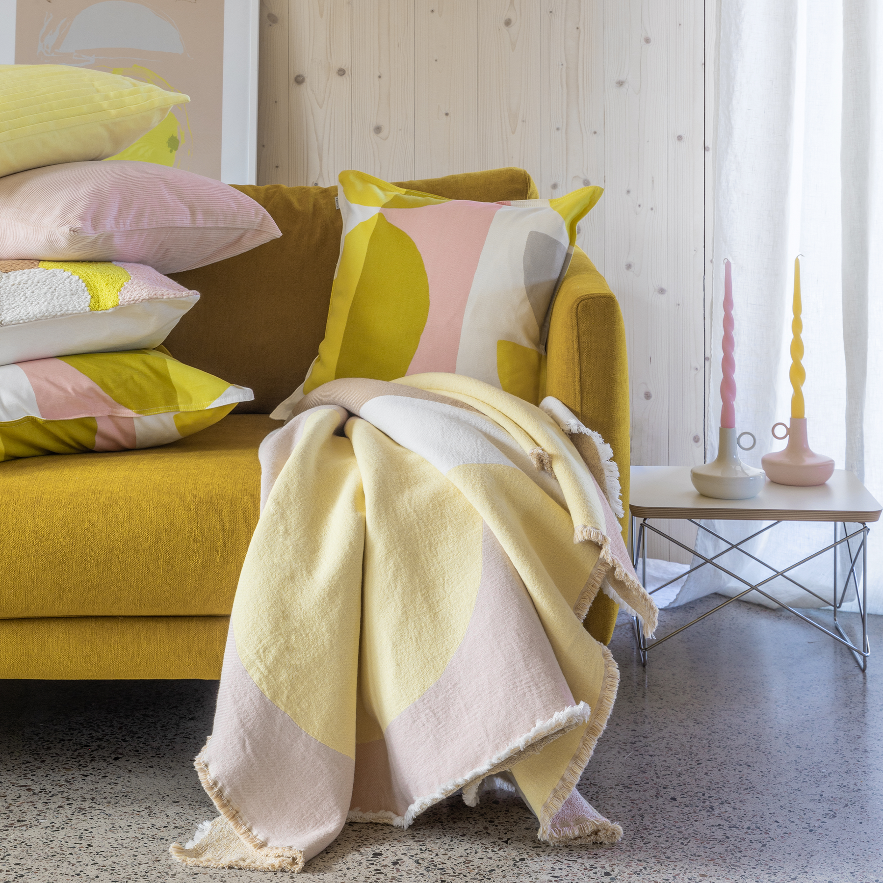 The bright yellow Kierre dinner candle is a lovely detail in table setting and home interior.