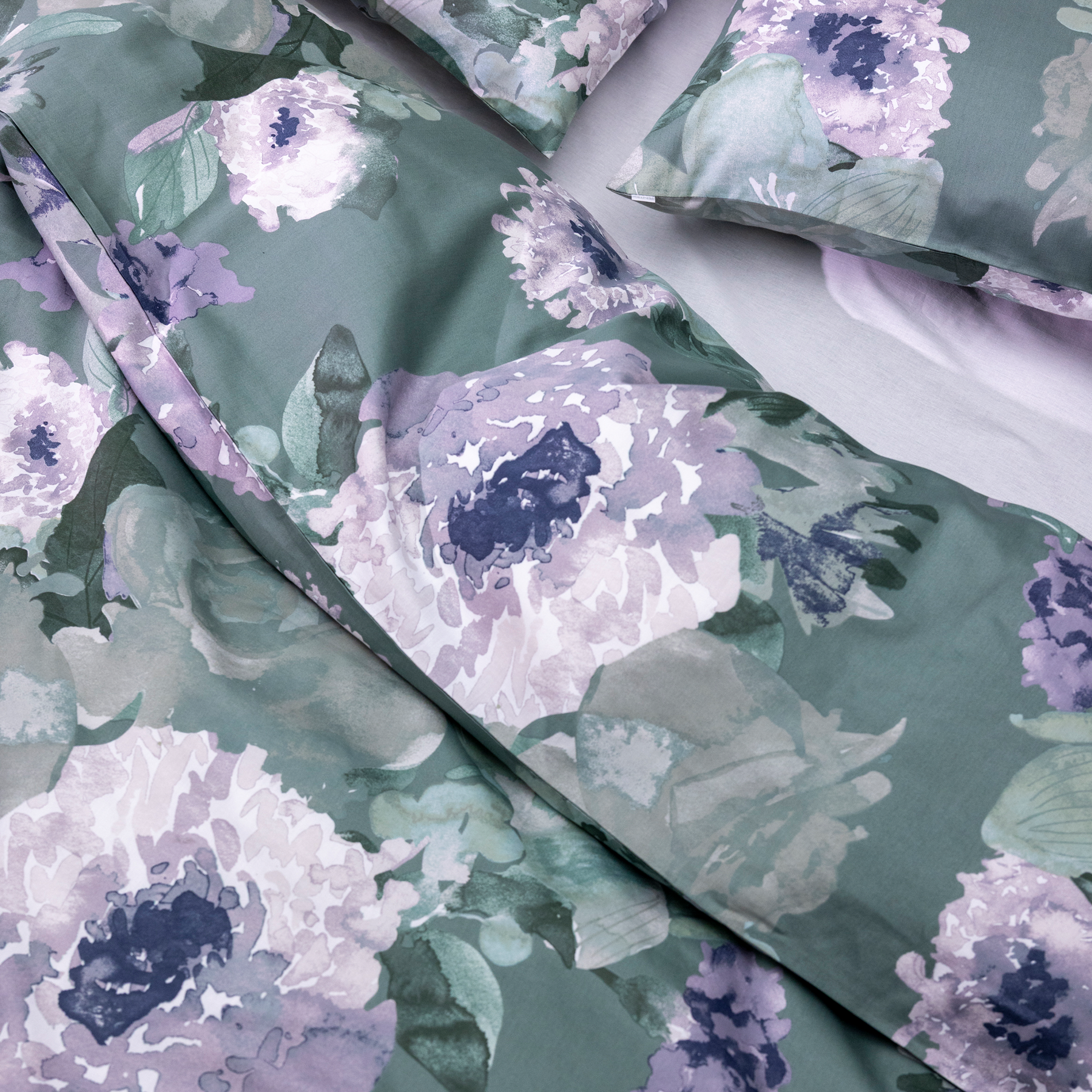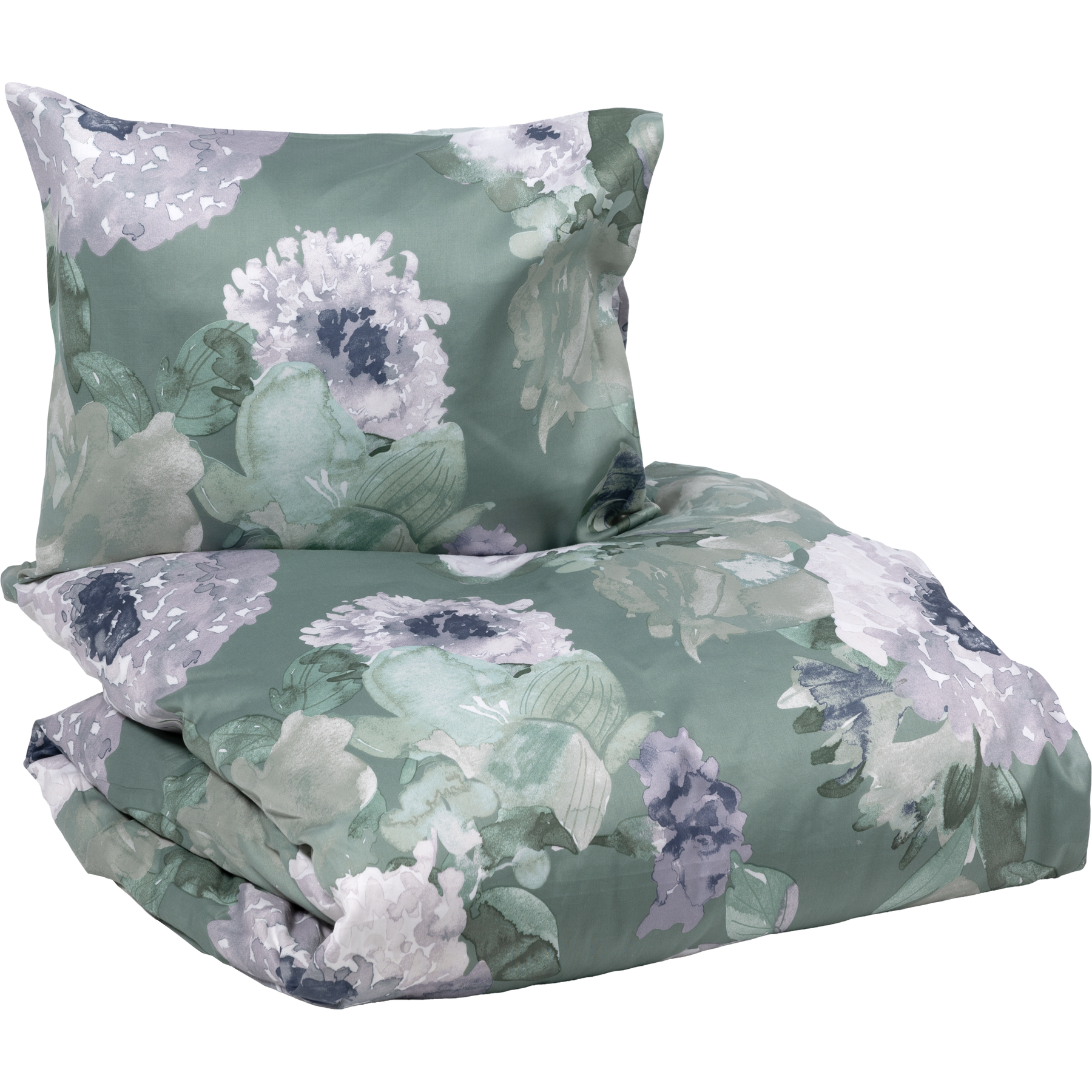 The size of Kranssi duvet cover is 150x210 cm and the size of the pillowcase is 50x60 cm. The sheets are 100% cotton sateen (TC200). Machine washable at maximum 60 degrees.