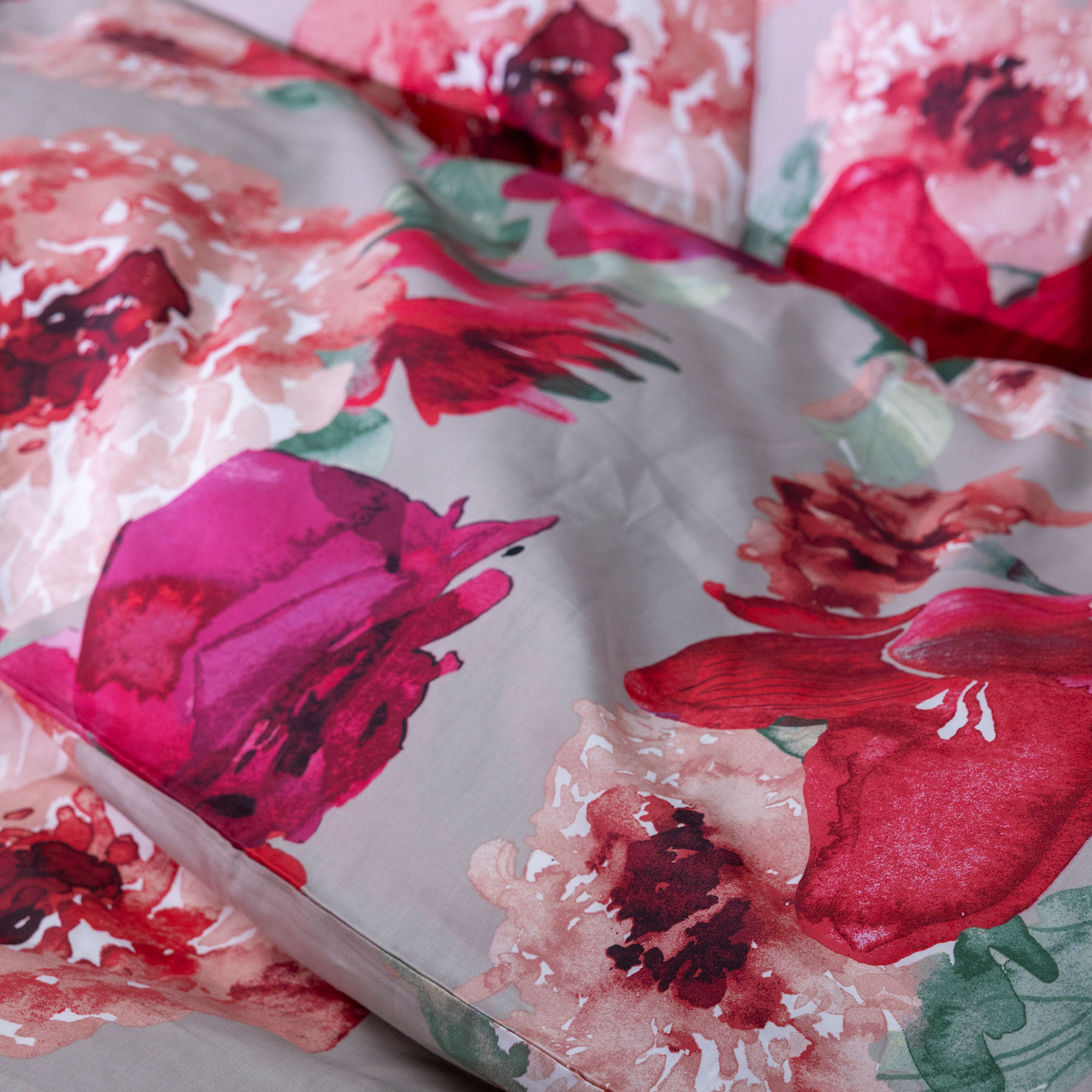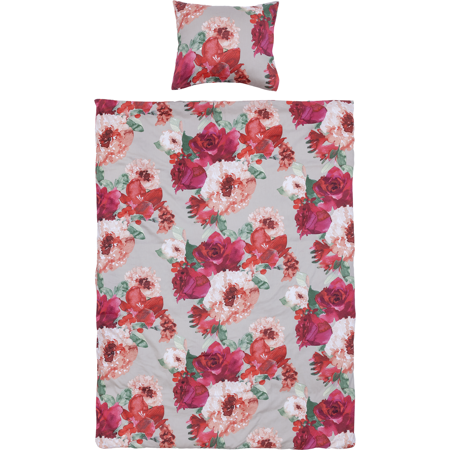 The size of Kranssi duvet cover is 150x210 cm and the size of the pillowcase is 50x60 cm. The sheets are 100% cotton sateen (TC200). Machine washable at maximum 60 degrees.