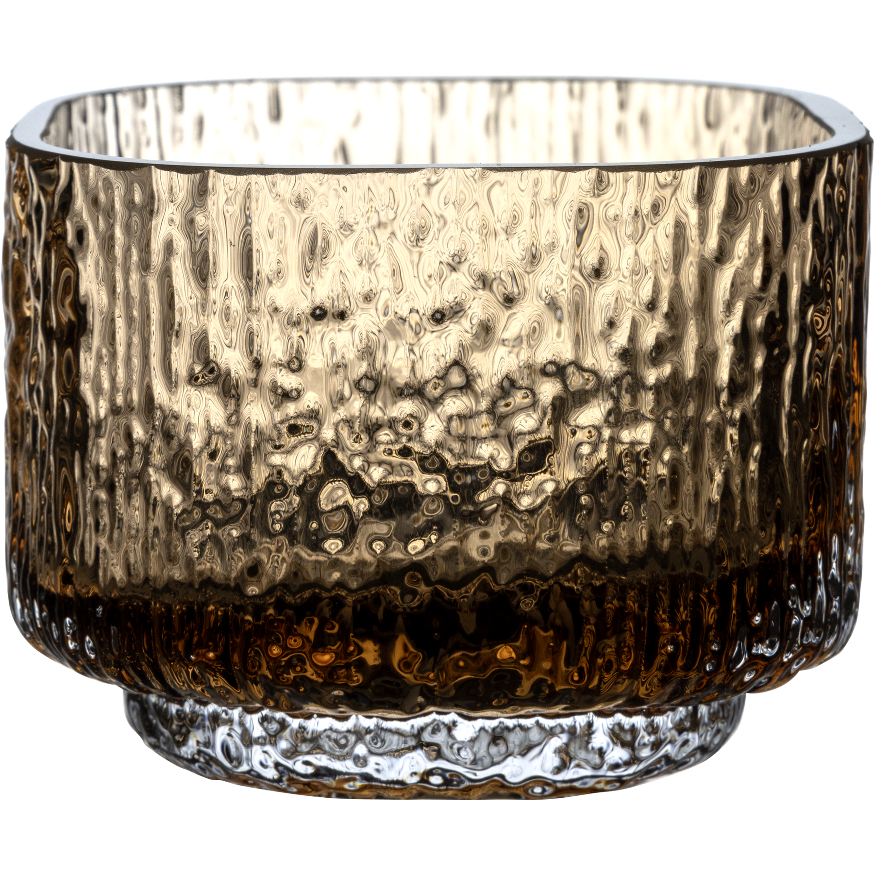 The size of this brown Kuulea candle glass is 8x6 cm. Its mouth-blown glass so it can show signs of handwork and have bubbles in the glass.