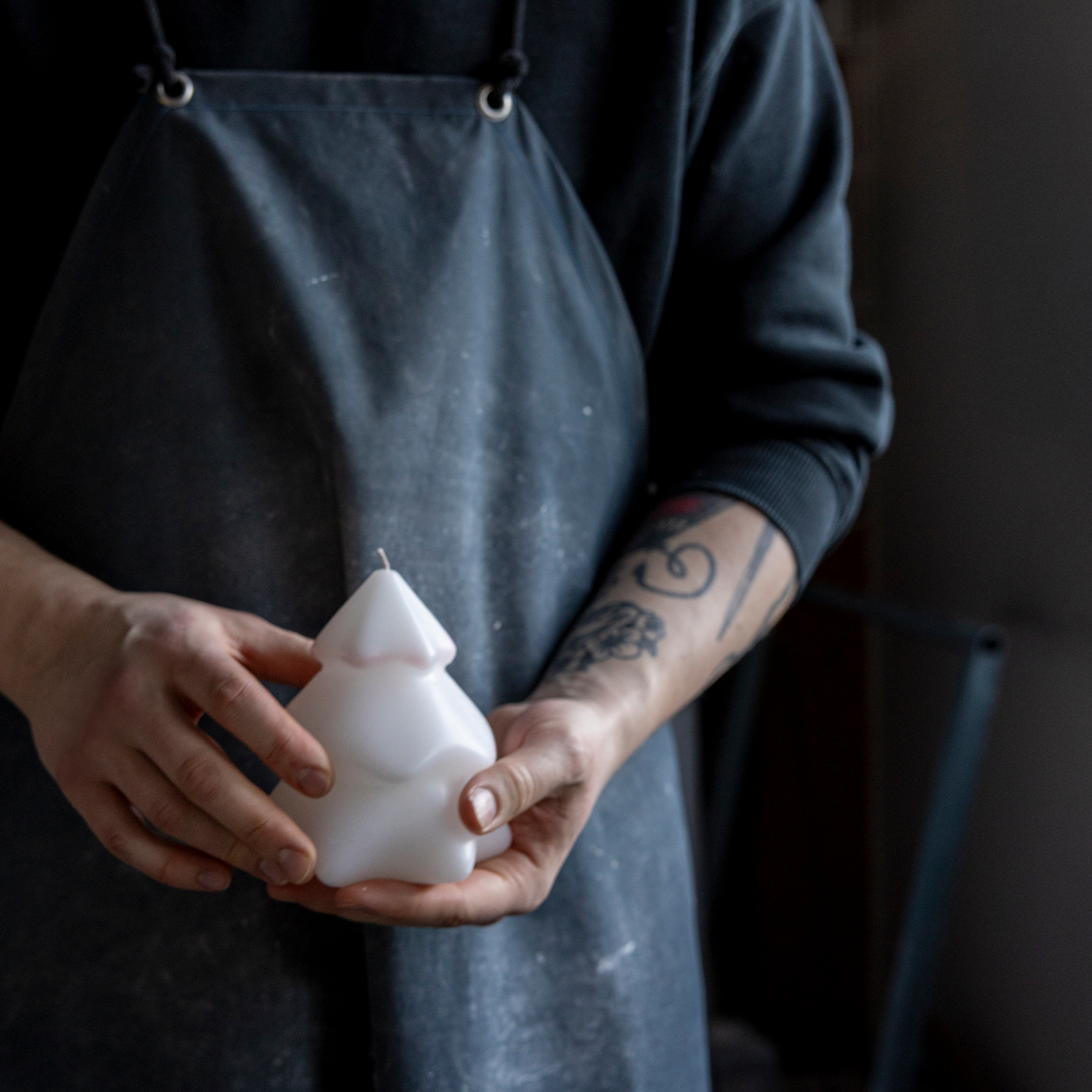 In Posio, Pentik's home, the spruce trees carry a huge load of snow on their branches during the winter. The imagination of a walker in the forest makes the trees look like the strangest characters. The white Kuusipuu (Christmas tree) candles are hand-made in our candle factory in Posio. Our candle factory manufactures candles in various colours, and it is easy to find a perfect candle for your table setting or home decoration from our collection. Hand-made candles make for excellent gifts.