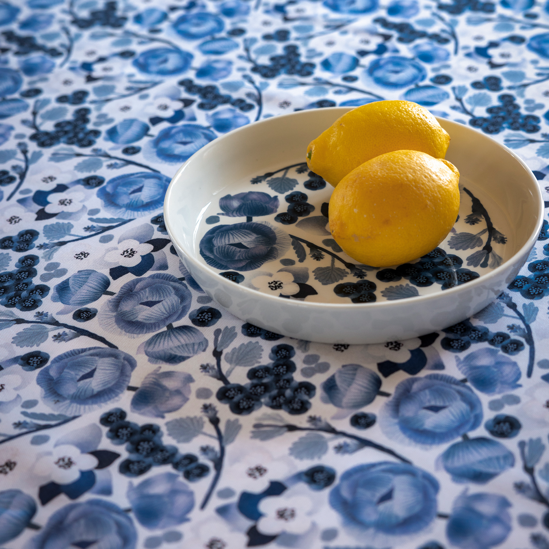 In Lapland, everything blooms quickly. But even more beautifully. The round-the-clock sunshine makes not only the flowers but also the people take full joy in the most beautiful time of the year. Lasse Kovanen used watercolours to paint Lapland's plants on a surface reminiscent of an early summer forest floor in bloom. The blue and white colour scheme gives the pattern a Mediterranean and Nordic feel at the same time. The tableware, fabrics, cushion covers, kitchen textiles and tablecloths in the Lapinkukka (Lapland Flower) collection make the fleeting blossoming season in Lapland continue from summer to winter and even to the following summer.