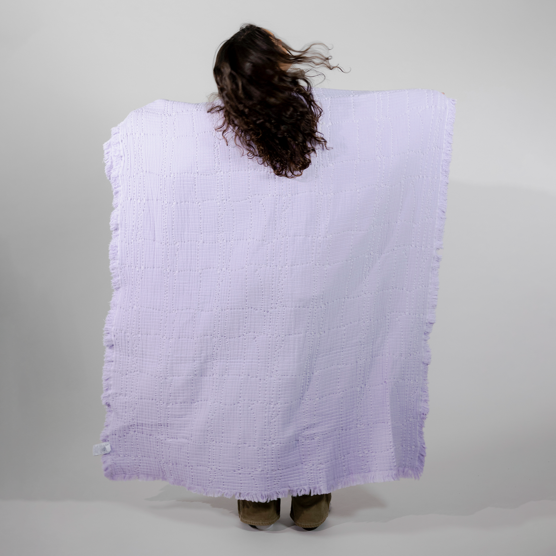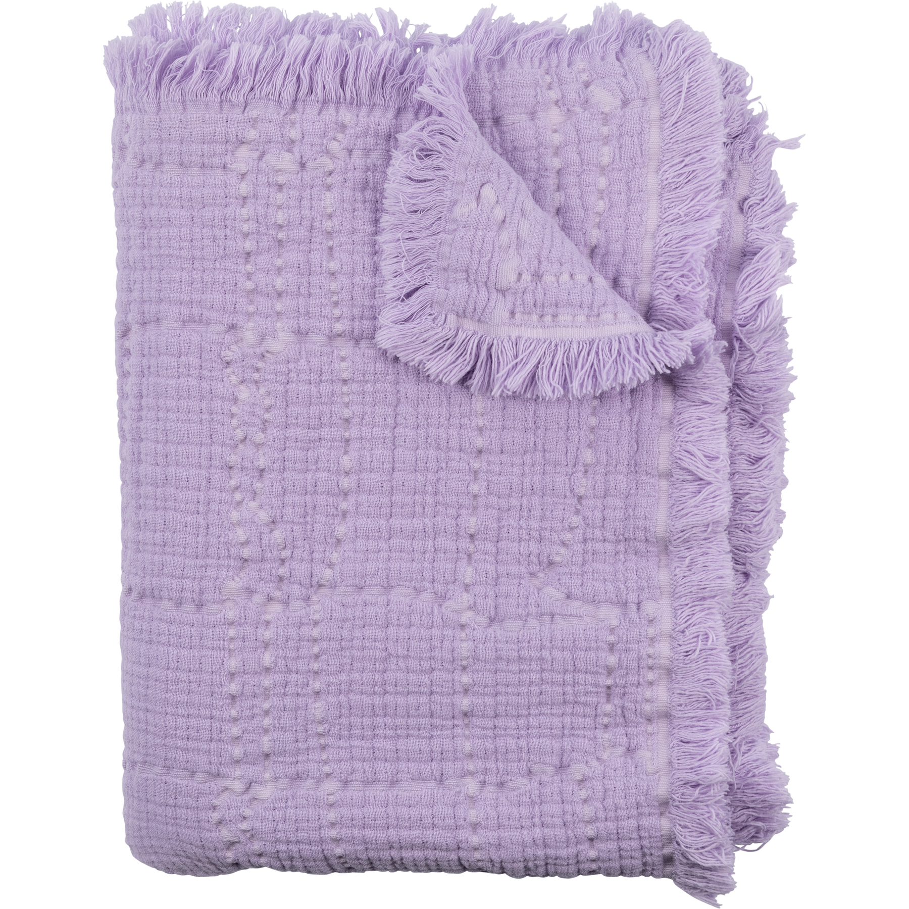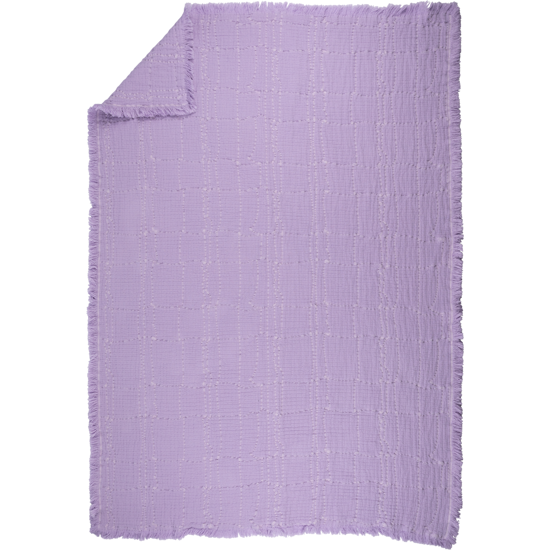 The Lastu blanket is made of 100% cotton and measures 124x170 cm. It has a textured surface and fringes on each edge.