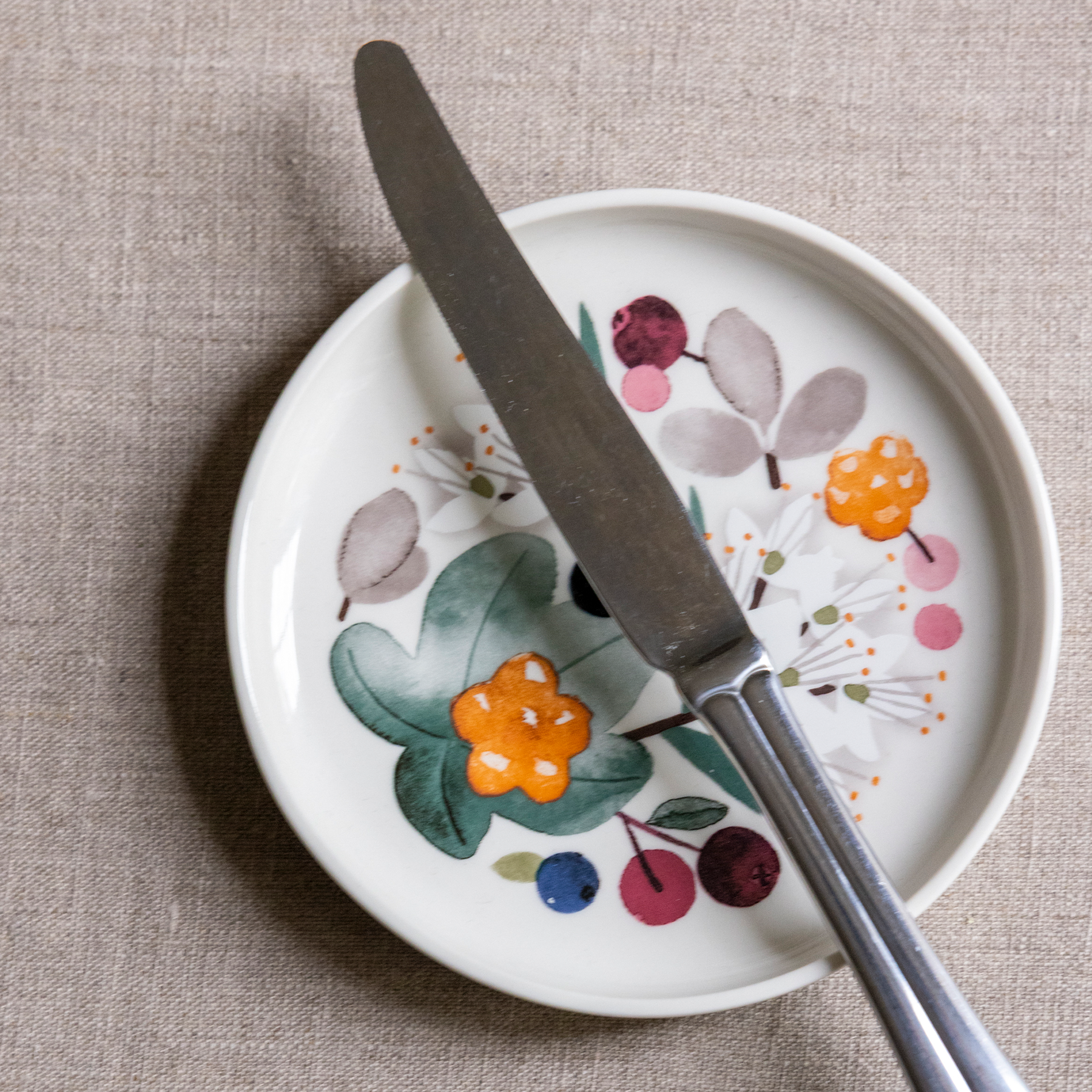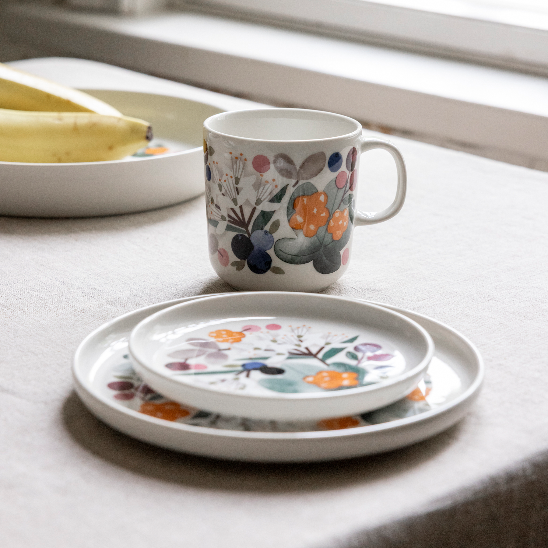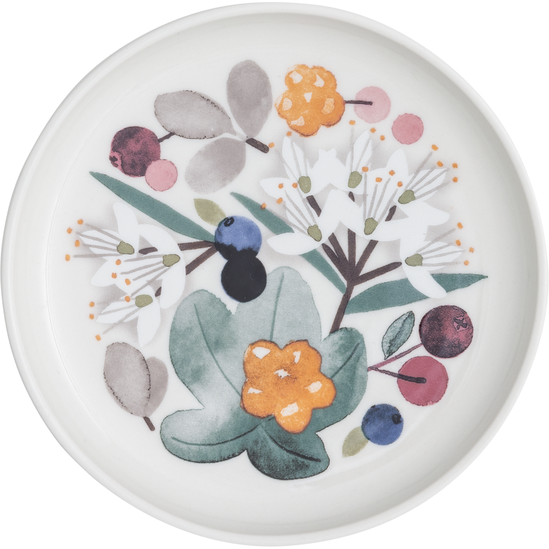 The Metsämarja plate has a diameter of 15 cm. The plate is machine washable and can be used in electric oven, microwave oven and freezer.