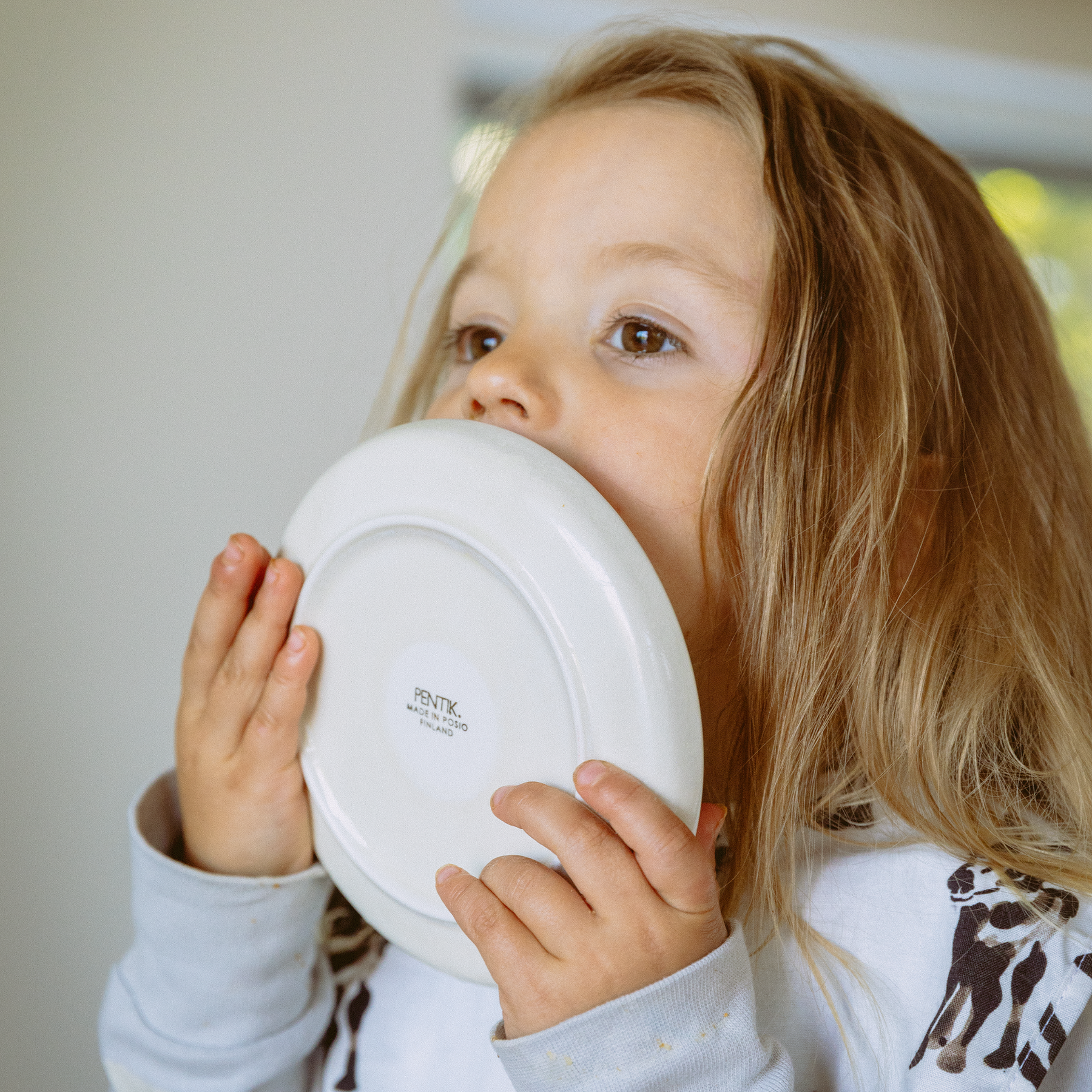 The Metsänväki deep plate has a diameter of 14 cm. This children's plate is machine washable and can be used in the electric oven, baking oven, microwave and freezer.