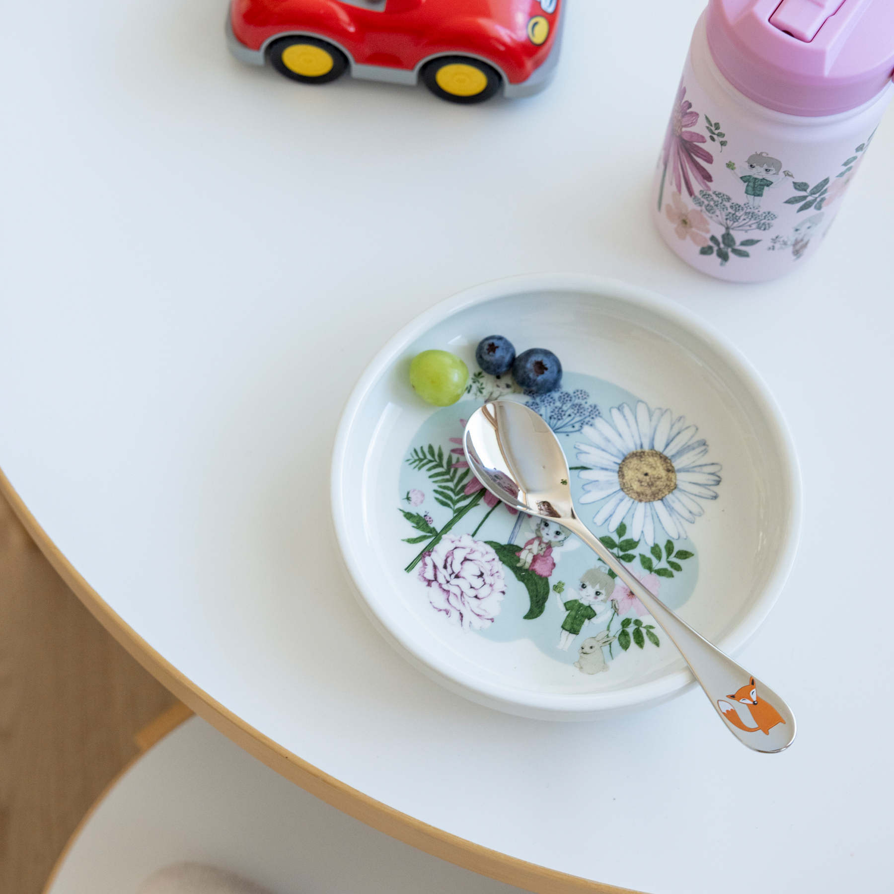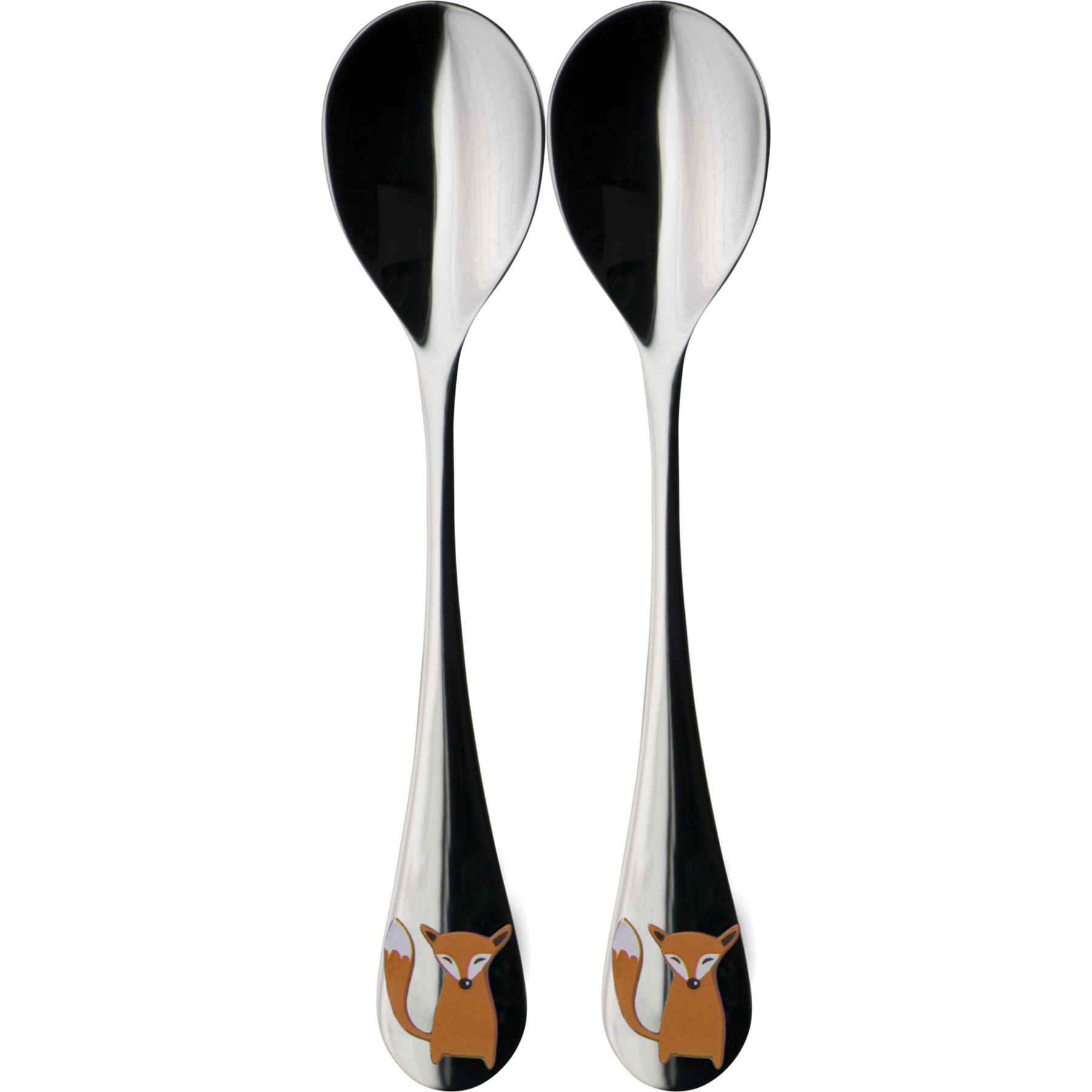 This children's spoon is made of stainless steel. Machine washable. The package contains two spoons.