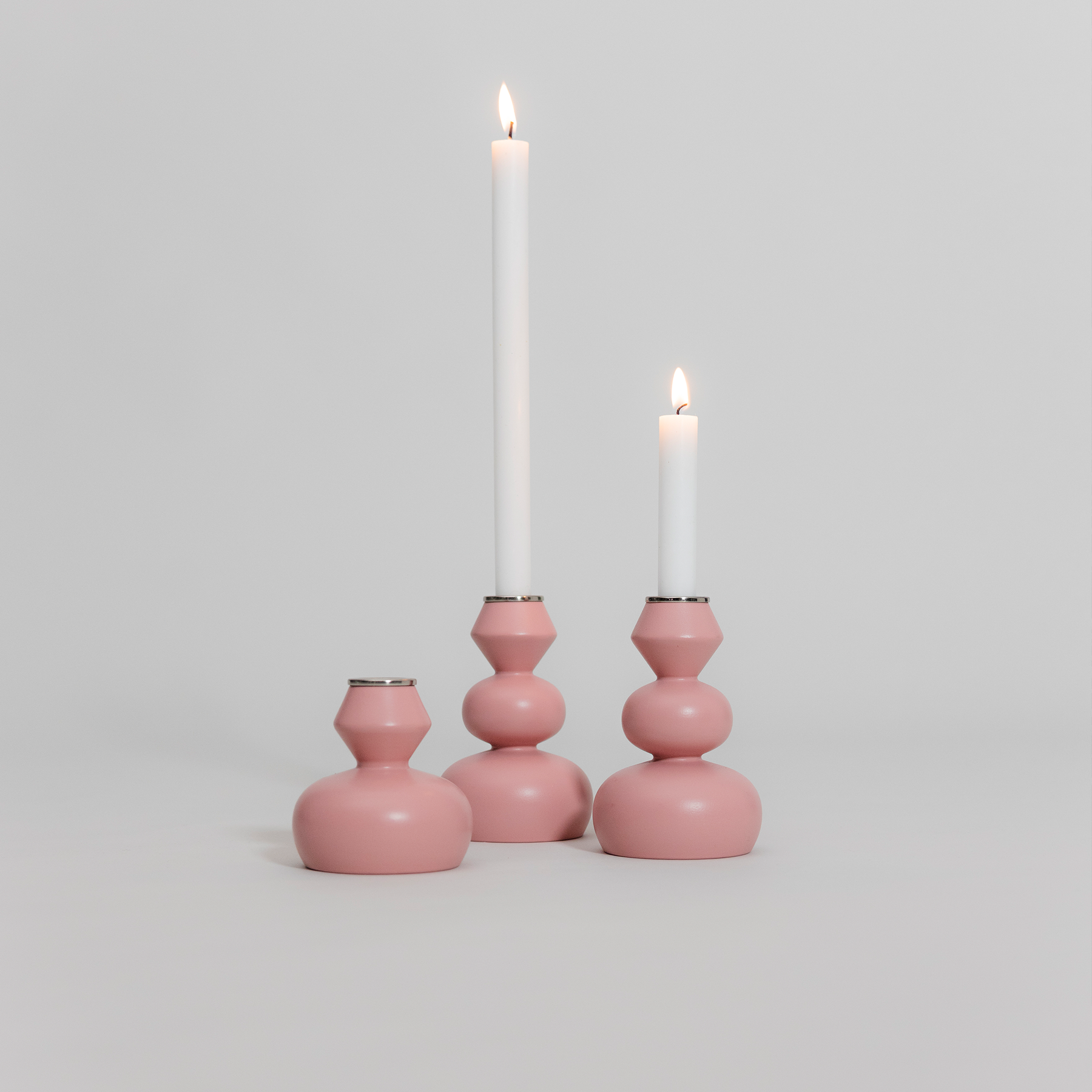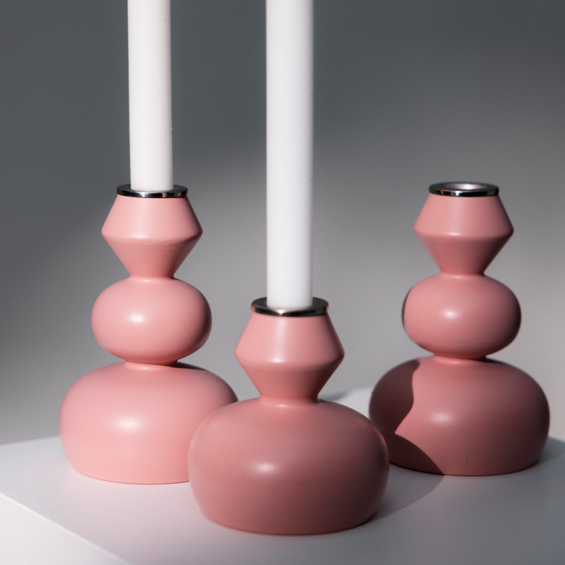 The modern and charming Myski candle holder is a delightful interior element, combining round and angular shapes. The candle holder in pretty pink fits perfectly to Scandinavian homes and even for a minimalistic home interior. The candle holder is made of painted birch with a metallic base. Size of the Myski candle holder is 9x14 cm.