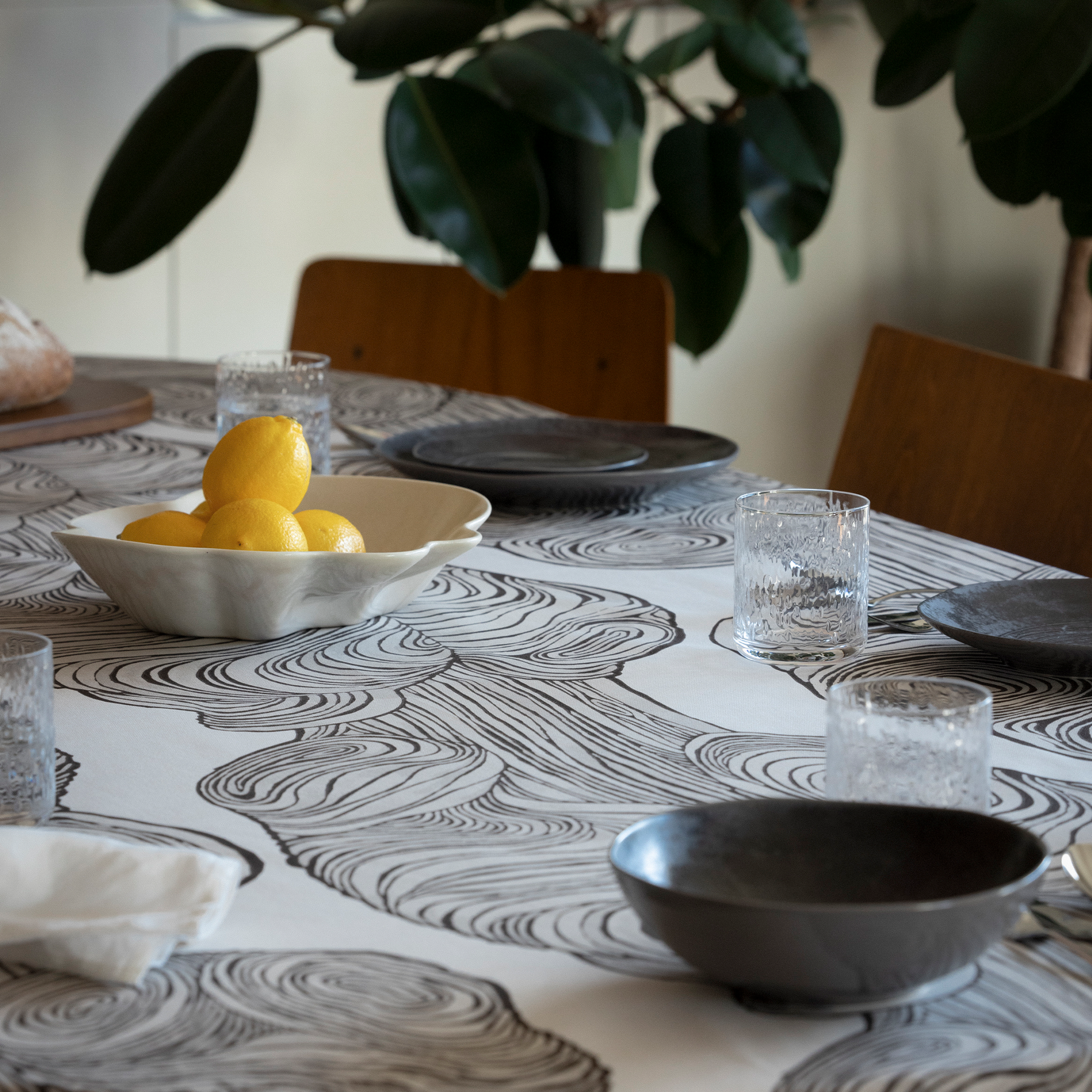 In the hands of a designer, the details of nature become art. The Pahka (Gnarl) collection was created by Lasse Kovanen at the ceramics factory in Posio. He designed the shapes using a traditional sculpting method, carving them out of plaster. The swirling shapes of gnarls growing on tree trunks were then drawn into modern textile patterns. The sculptural fabrics, cushion covers and ceramic vases of the collection bring a forest-like and earthy atmosphere into the home.