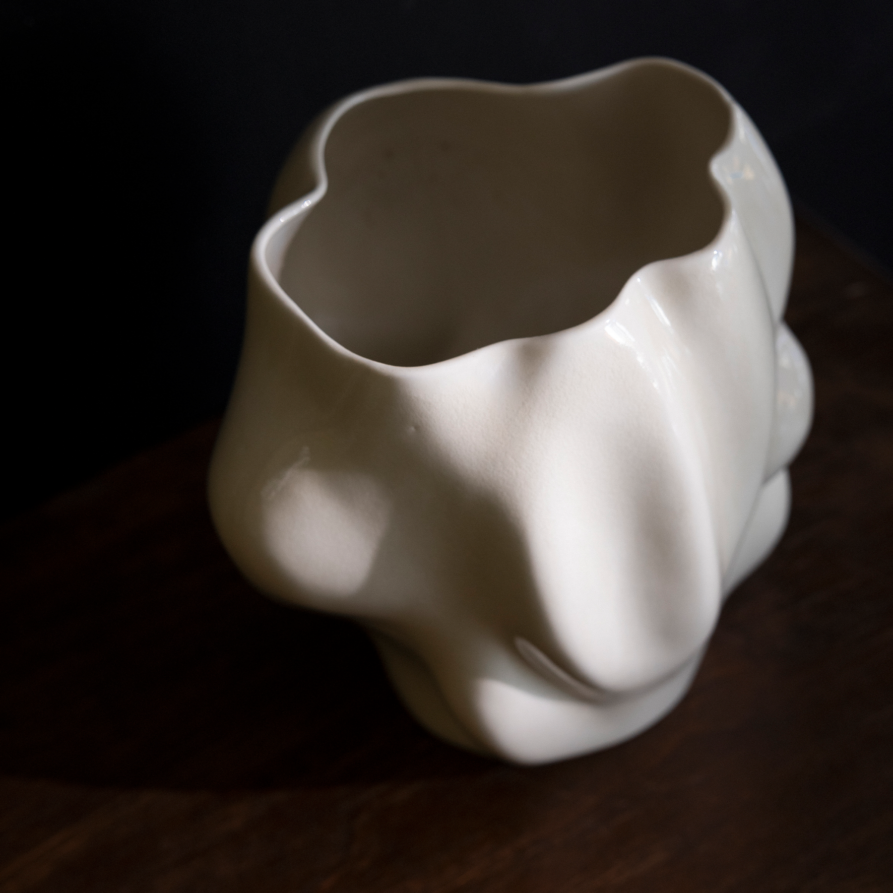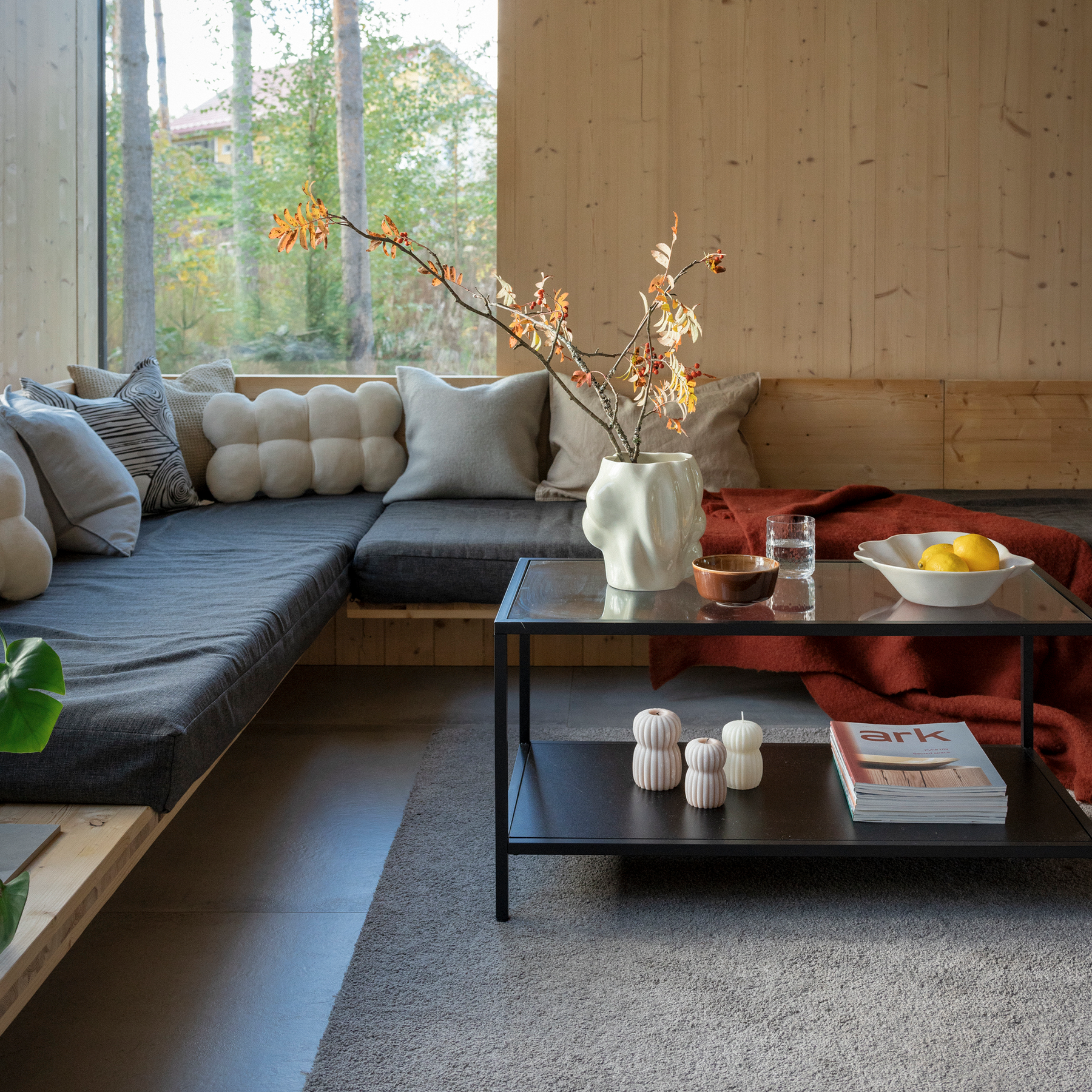 In the hands of a designer, the details of nature become art. The Pahka (Gnarl) collection was created by Lasse Kovanen at the ceramics factory in Posio. He designed the shapes using a traditional sculpting method, carving them out of plaster. The swirling shapes of gnarls growing on tree trunks were then drawn into modern textile patterns. The sculptural fabrics, cushion covers and ceramic vases of the collection bring a forest-like and earthy atmosphere into the home.