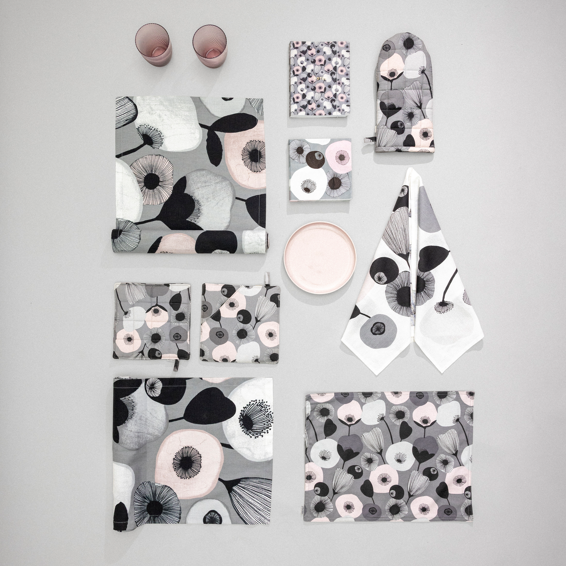 Pastelli kitchen towel is made of 50% linen and 50% cotton. It can be machine washed at 60°C. Size: 47x70 cm. A modern style does not have to be cold and clinical! Minna Niskakangas designed a trendy pattern with her mellow and engaging touch. The name "Pastelli" refers to the drawing technique and the sweet shapes and colours boosted with black details.