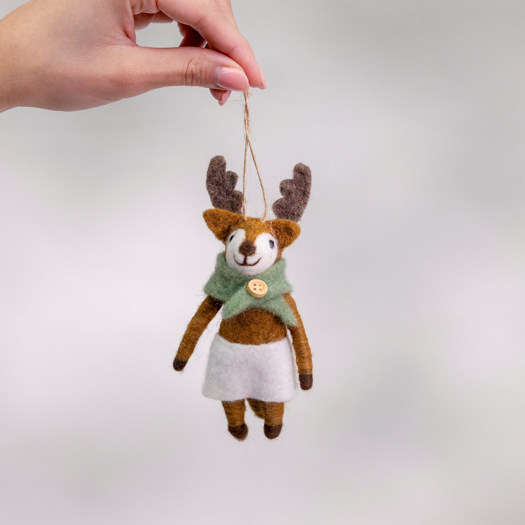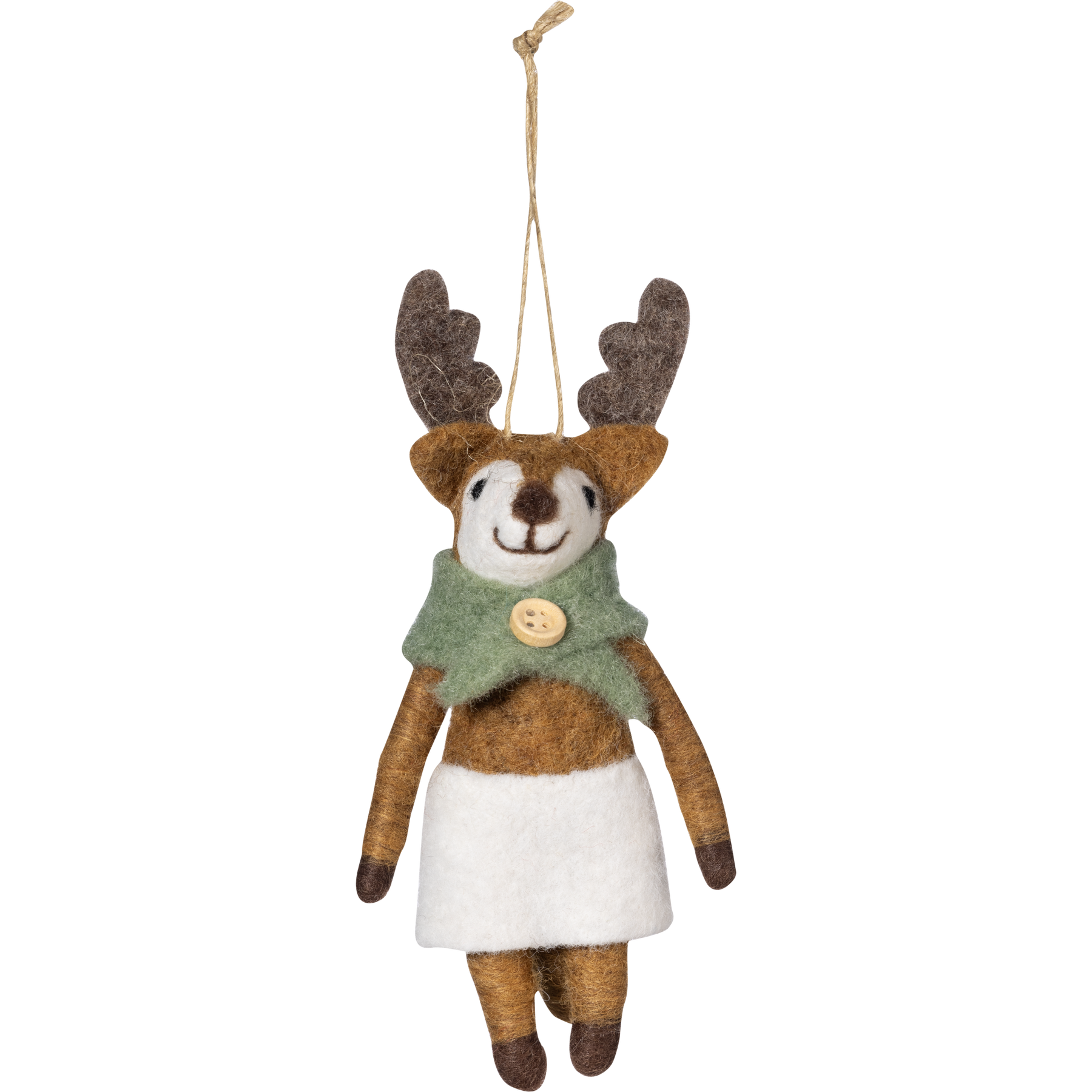 The size of brown Peetu deer decoration is 15 cm and it is made of polyester and wool.