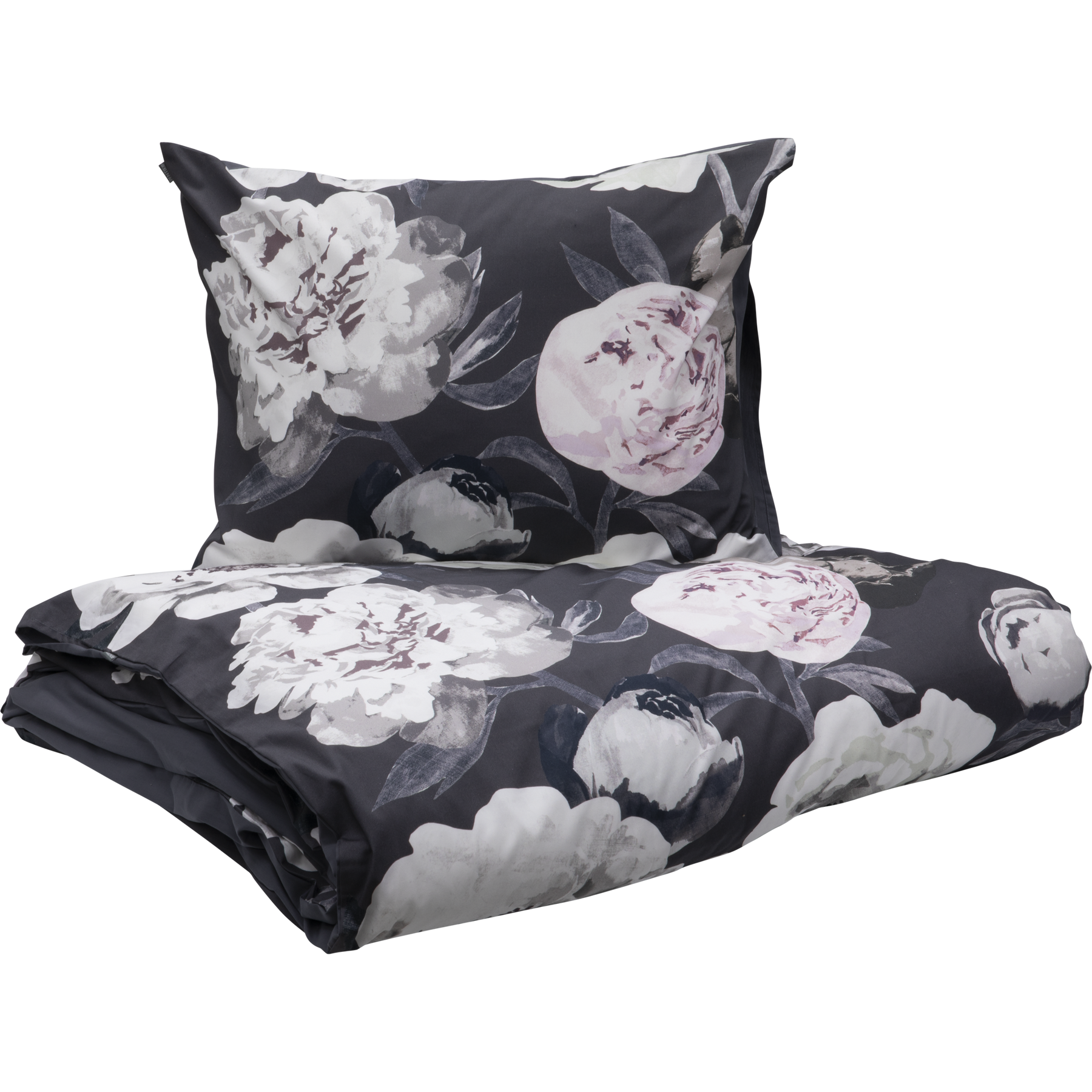 The dark grey Pioni duvet cover set includes a 150x210 cm duvet cover and a 50x60 cm pillowcase. Both sides of the duvet cover and pillowcase are patterned. The bed linen is 100% cotton percale (TC200) and can be washed at 60 degrees. The cotton percale is the most commonly used material for bed linen. It is densely woven, easy to care for and has a matt surface. It feels luxurious and comfortable against the skin, which is why cotton percale sheets are also called as "hotel sheets".