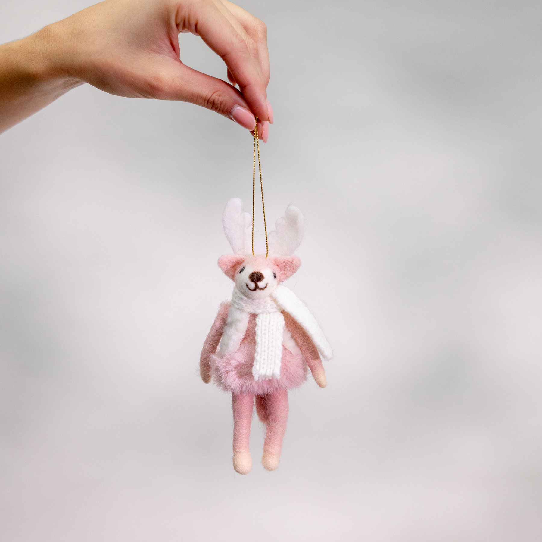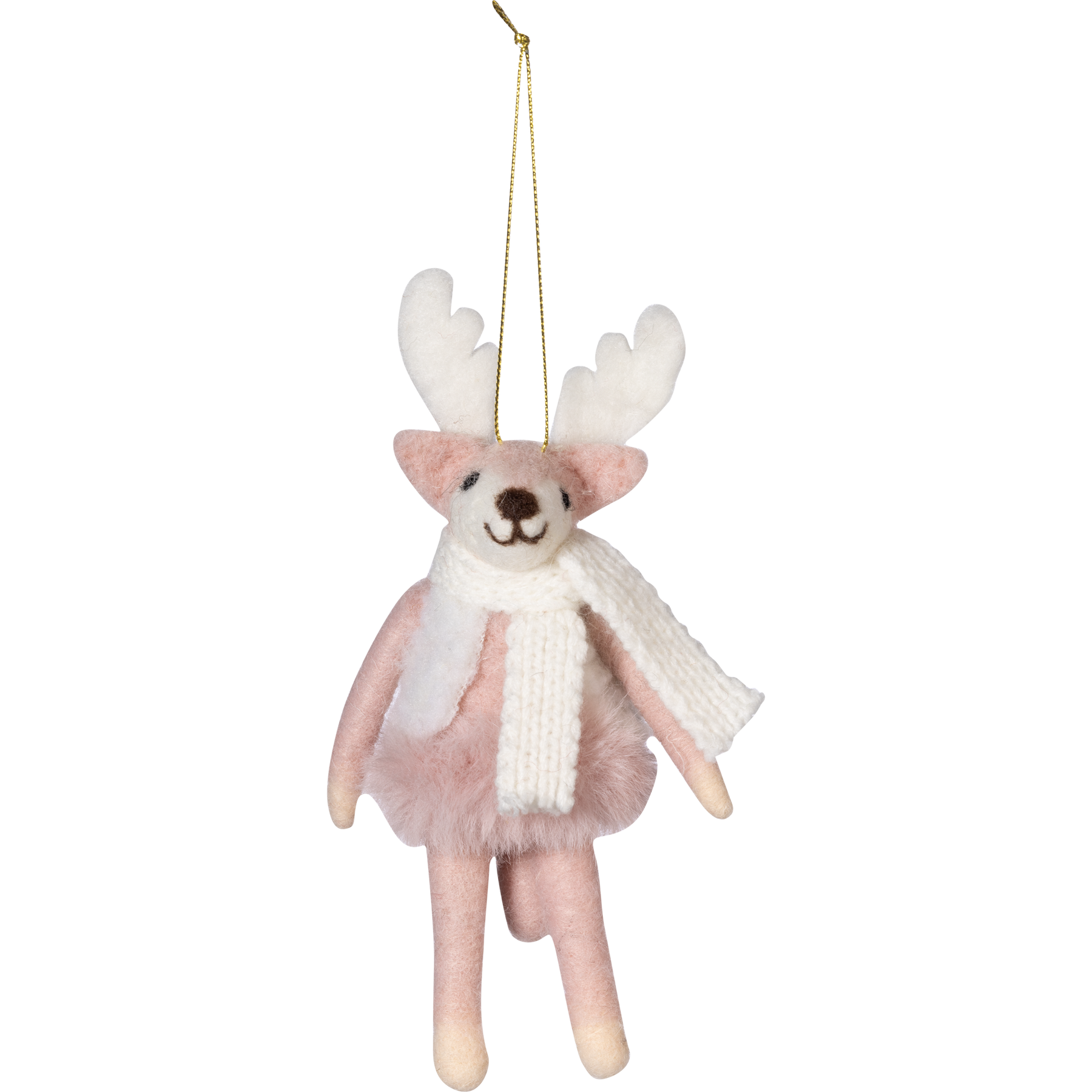 The size of pink Pipsa deer decoration is 15 cm and it is made of polyester and wool.