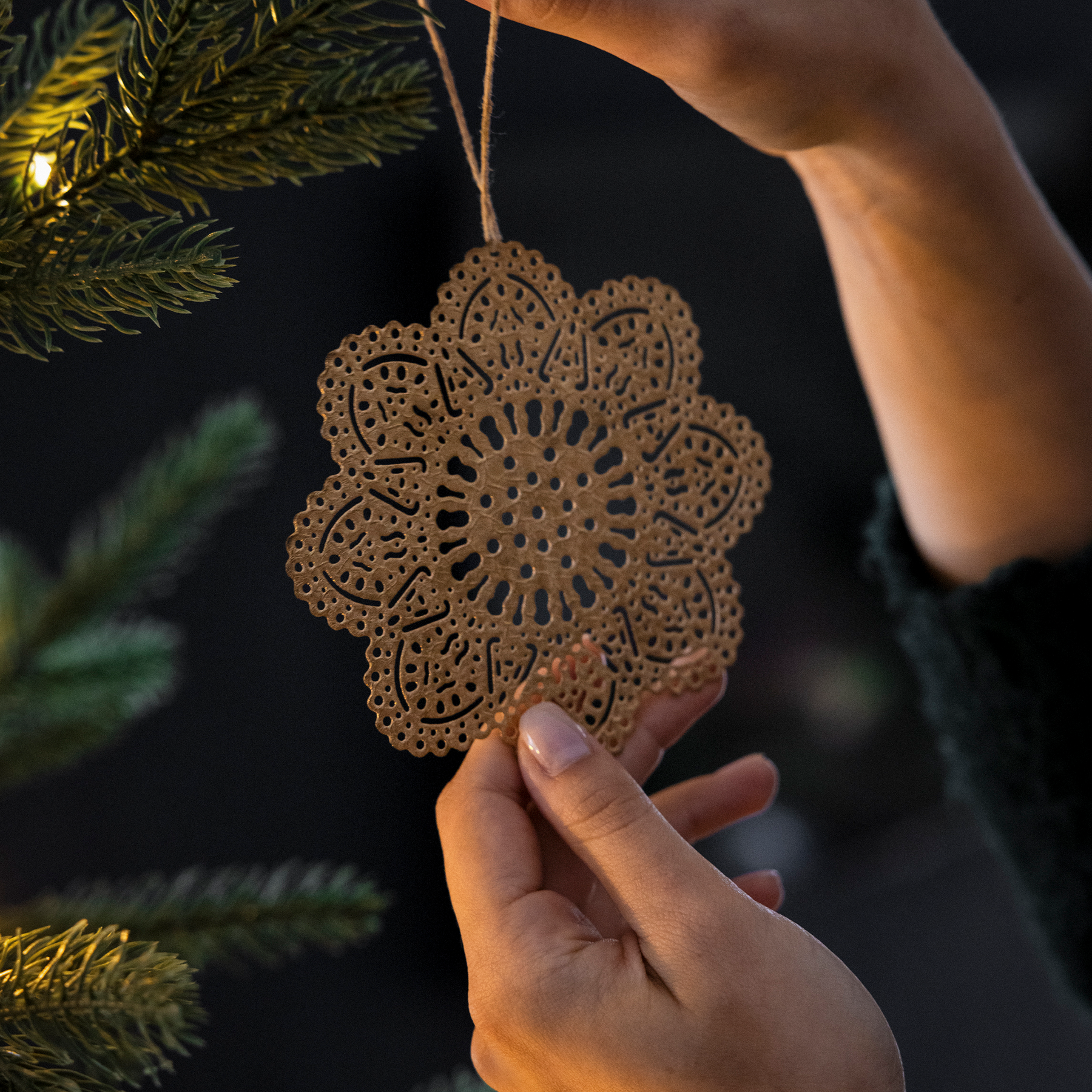 Start a new Christmas tradition and get a different ornament every year. The golden Pitsitähti (Lace Star) ornament is a cosy detail in the Christmas decoration and also suits natural and simplistic Scandinavian interiors. The ornament is made of painted metal and measures 11 cm.