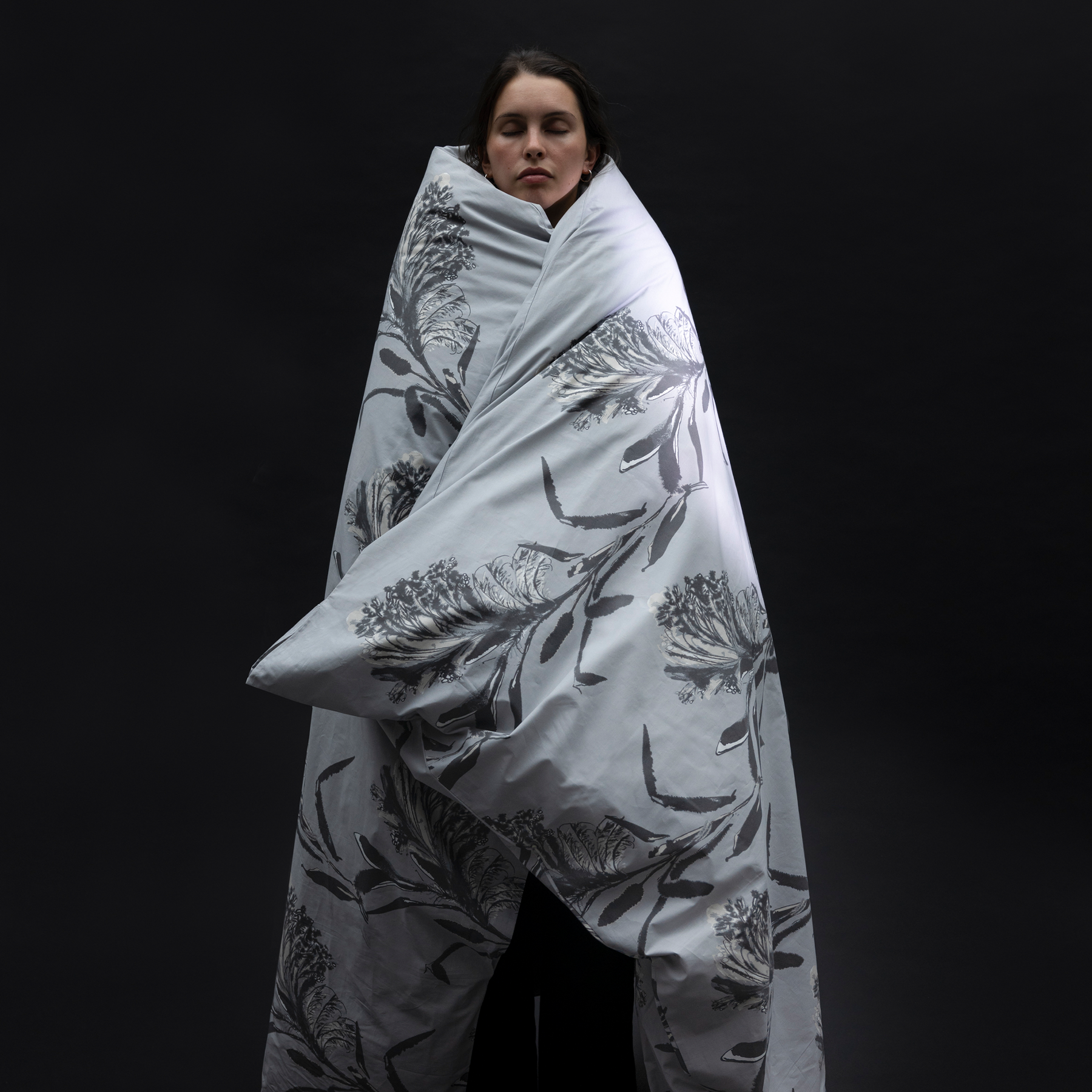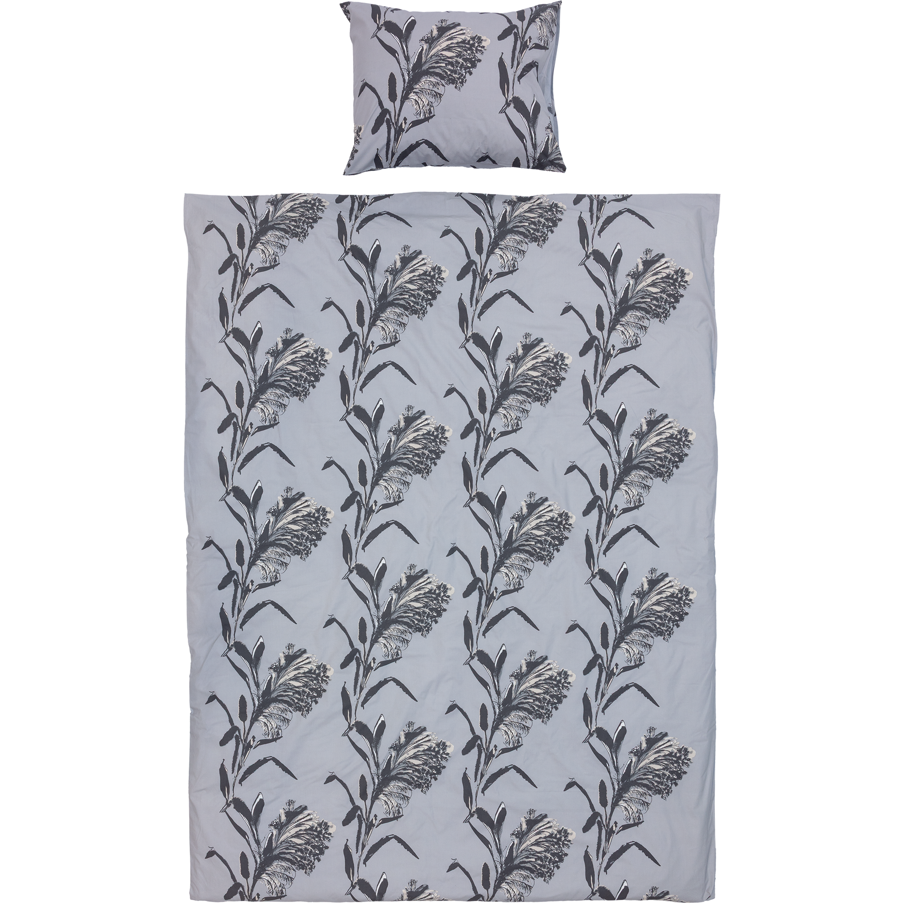 When the autumn sea breeze sprinkles rain on your face, the beach reeds hunker down just like us humans. The delicate reeds reaching out from freezing sea made designer Minna Niskakangas take up her brush. The ink spread on the wet paper gave the reeds a frosty look. Out of the autumn rain, it's nice to return to the warmth of home. To dive under the Ruoko bedclothes and grab a good book.