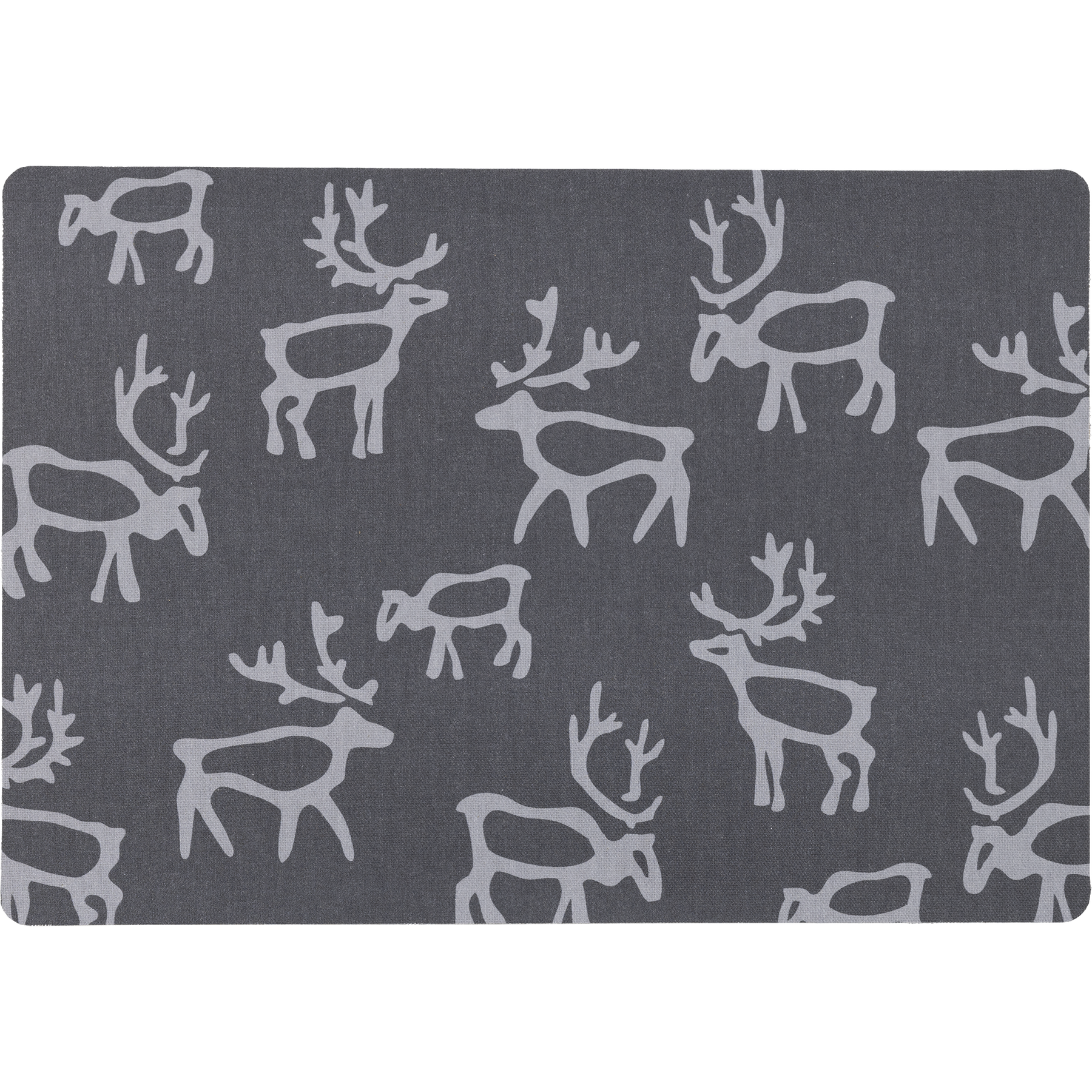There are more reindeer than people in Pentik's hometown Posio. Some has even peeped in through the window of our ceramics factory. People come from all over the world to see the reindeer. For us they are like pets. In the Saaga series, reindeer roam around in dishes and patterns — from tablecloths to sheets. So it's easy to imagine yourself napping on a reindeer sled. The pattern is designed by Minna Niskakangas. Now we also have placemats in this graphic pattern.