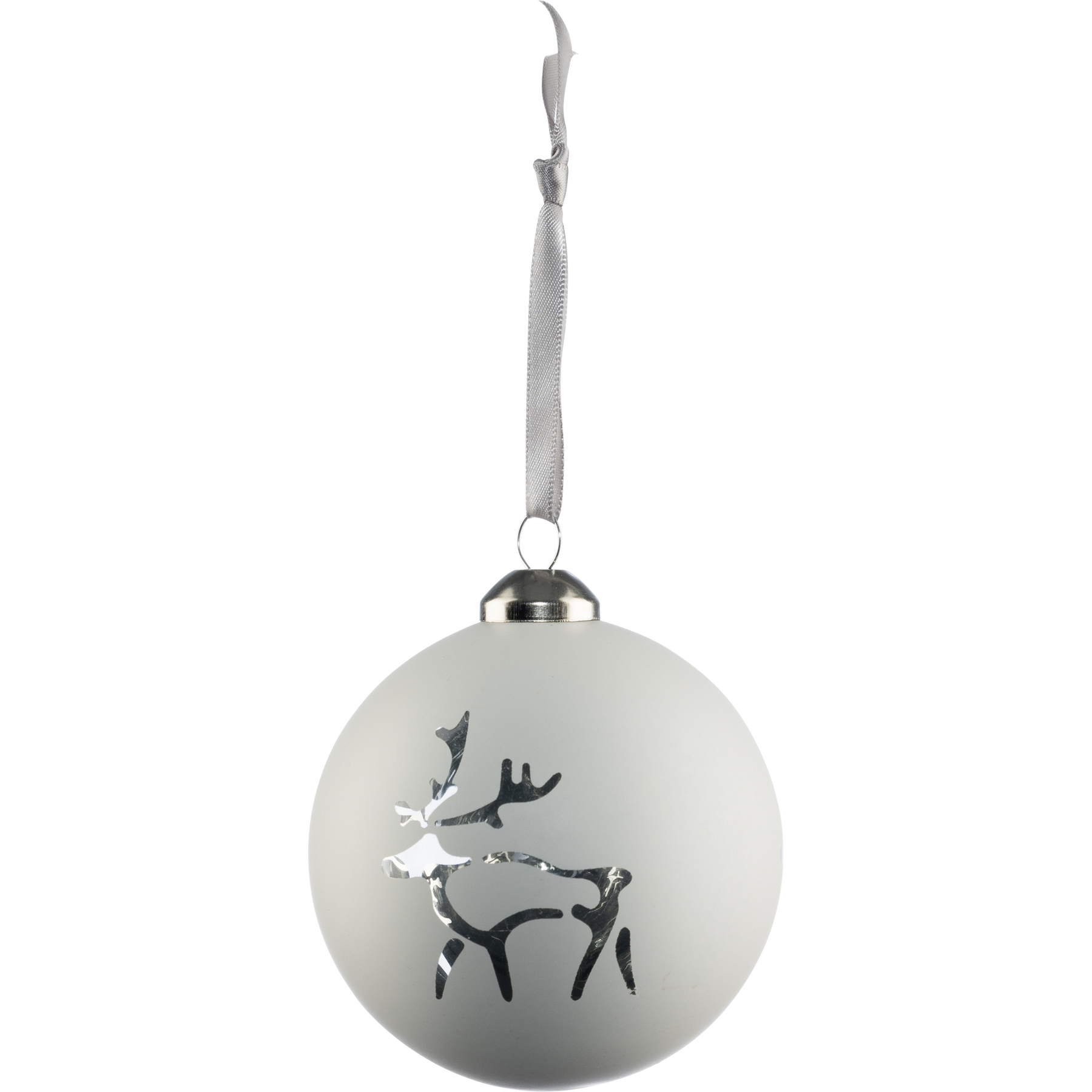 There are more reindeer than people in Pentik's hometown Posio. Some has even peeped in through the window of our ceramics factory. People come from all over the world to see the reindeer. For us they are like pets. Start a new Christmas tradition and get a different ornament every year. The white Saaga glass bauble may be the most admired ornament in many homes this year, creating ambiance in a stylish way. The Saaga glass bauble features a reindeer illustration designed by Minna Niskakangas. The size of this bauble is 8 cm.