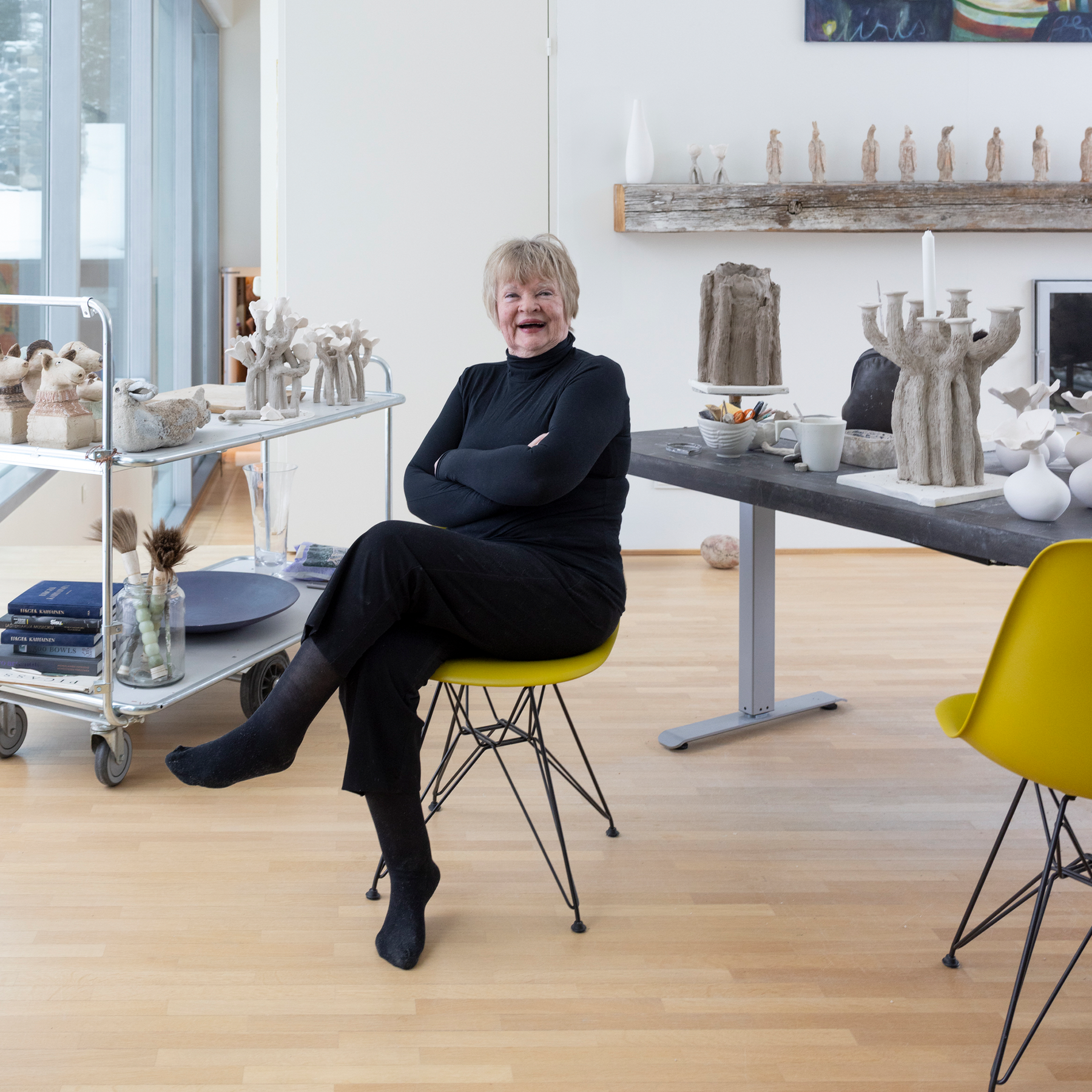 Every day, both good and bad, Anu Pentik needs to get her hands in the clay. It gives her joy and energy that is transmitted through her works to the outside world. In Anu's hands, clay bends to anything. Everything is possible – even a crooked branch of an old pine tree can suddenly burst into bloom. Anu believes that people have the same energy as trees. When you press your back against an tree trunk, you can feel the energy flowing. The Seinäkukka ceramic wall relief designed by Anu Pentik is part of the Pentik Studio collection, where all products are made in small batches and decorated by hand.