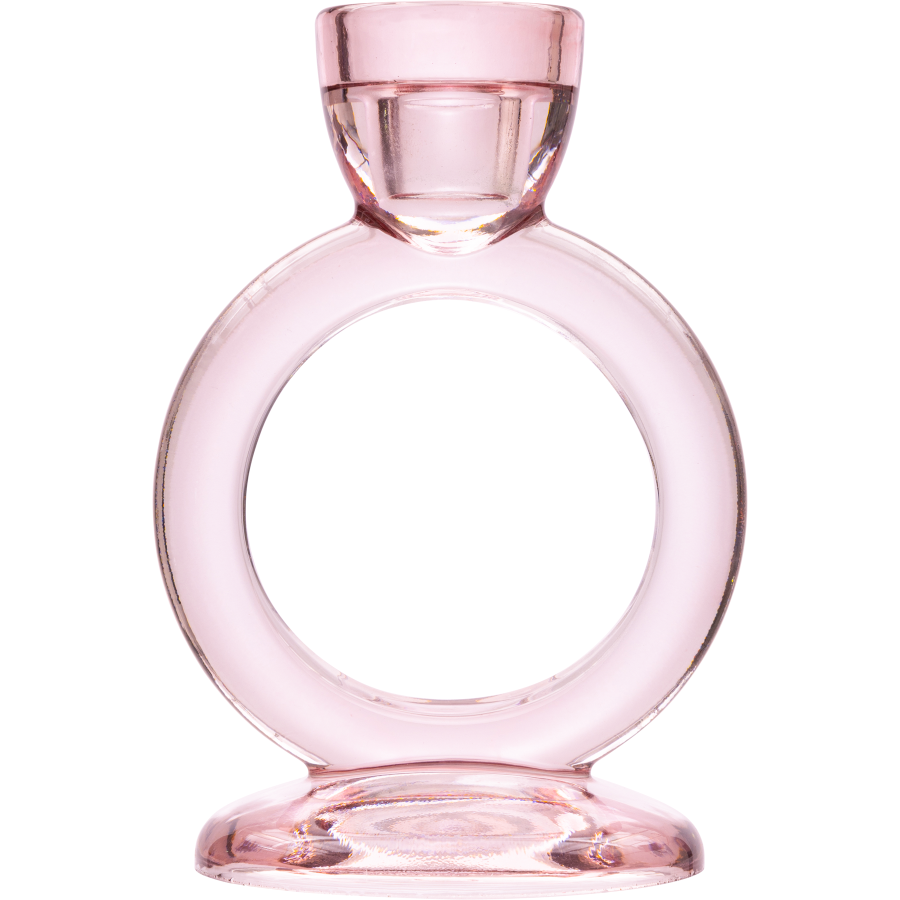 The pink Sormus candle holder is 12x17,5 cm in size. When burning the candle on a glass candleholder, do not burn it all the way to the end to avoid the flame from breaking the glass.