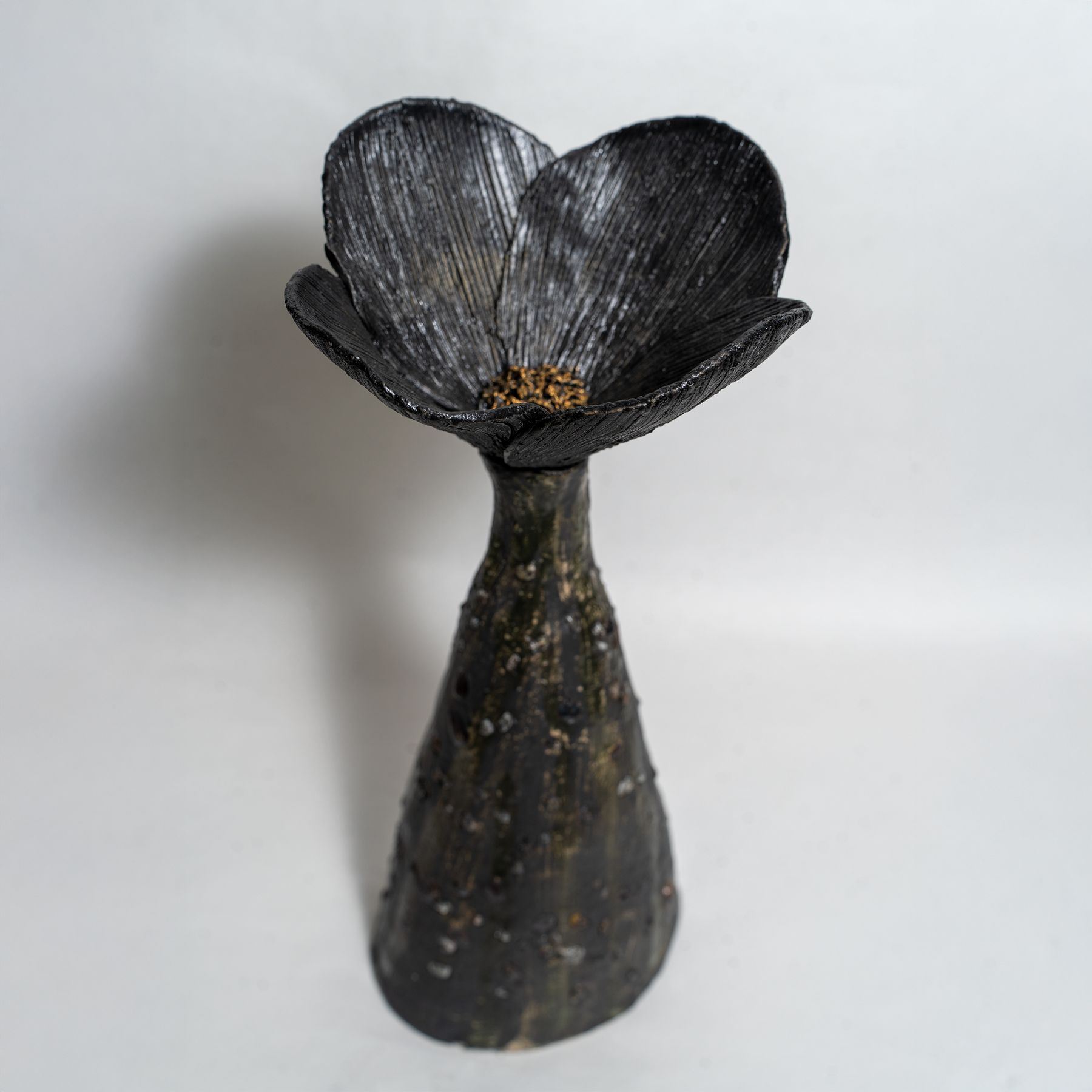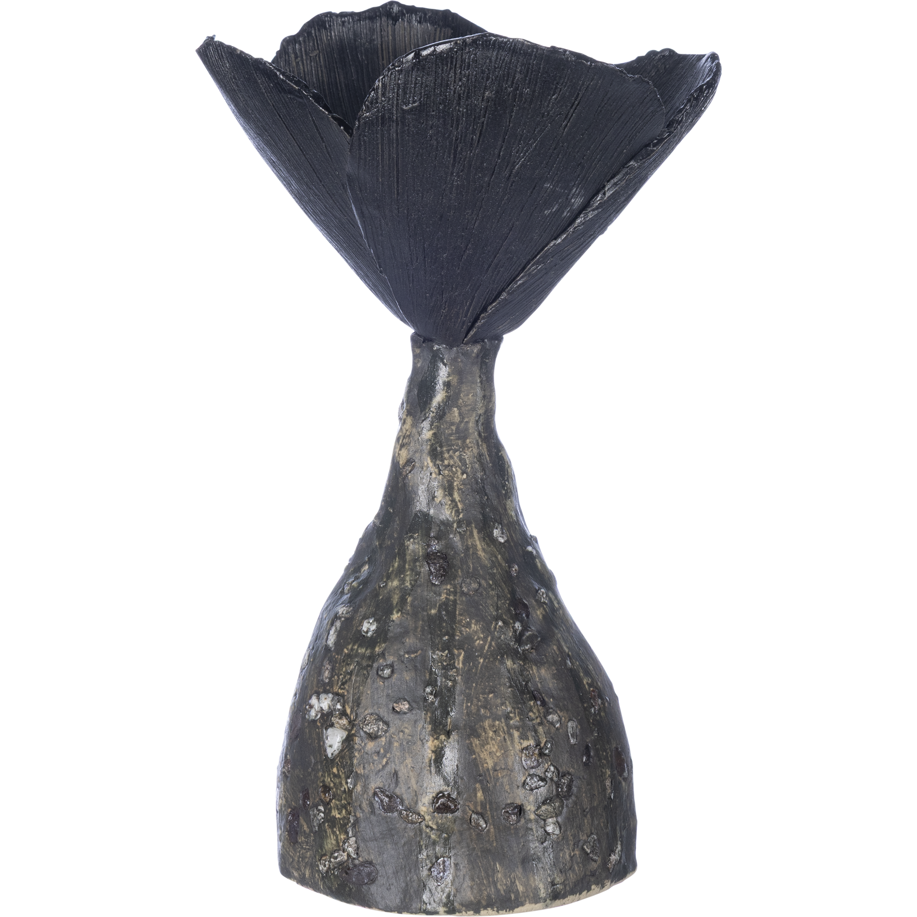 The black Leinikki Studio ceramic sculpture is 20 cm high. Made by hand in Posio, Finland, in the world's northernmost ceramics factory