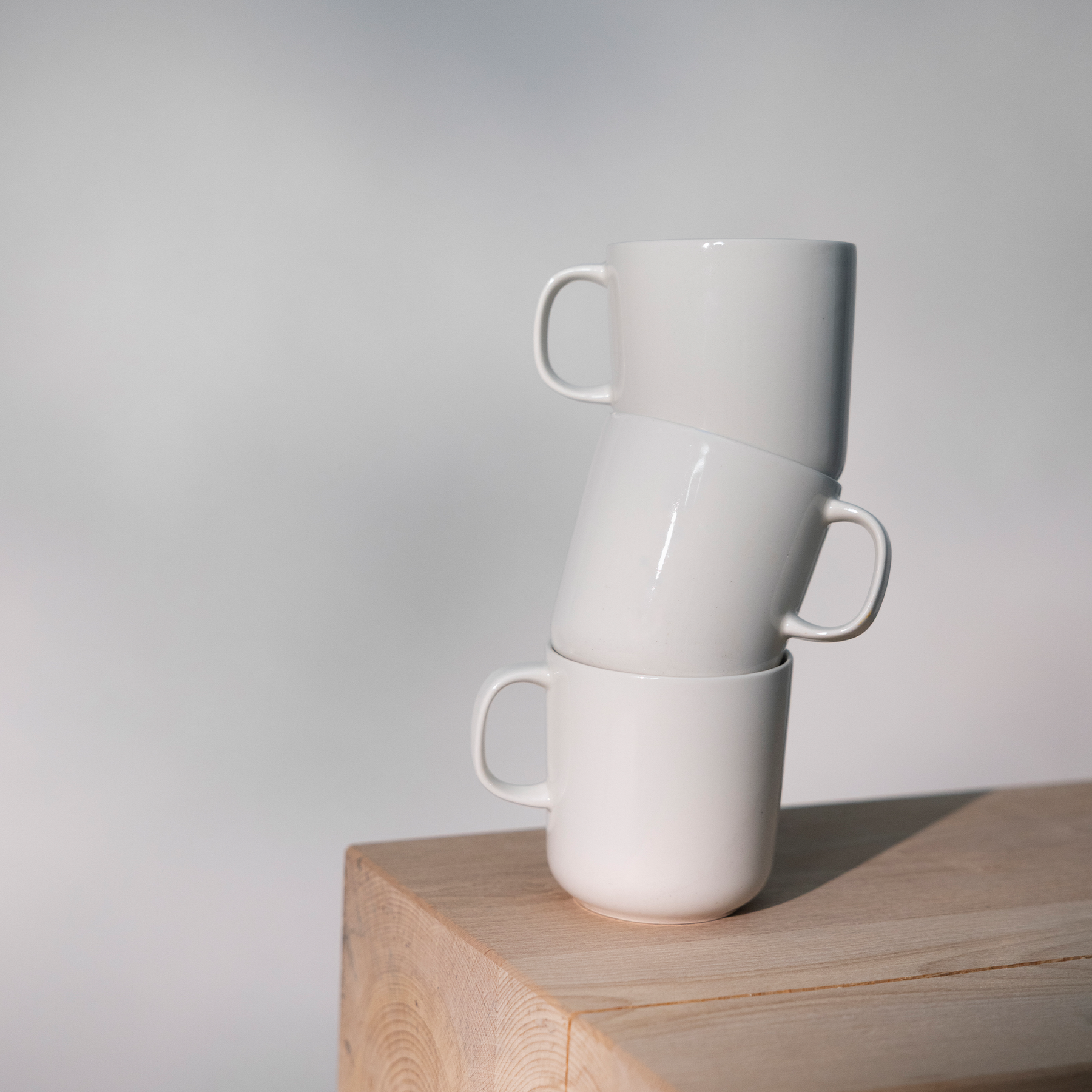 The white Tuntu mug has a capacity of 0,35 litres. All our ceramic dishes made in Posio are machine washable and can be used in electric oven, baking oven, microwave and freezer.