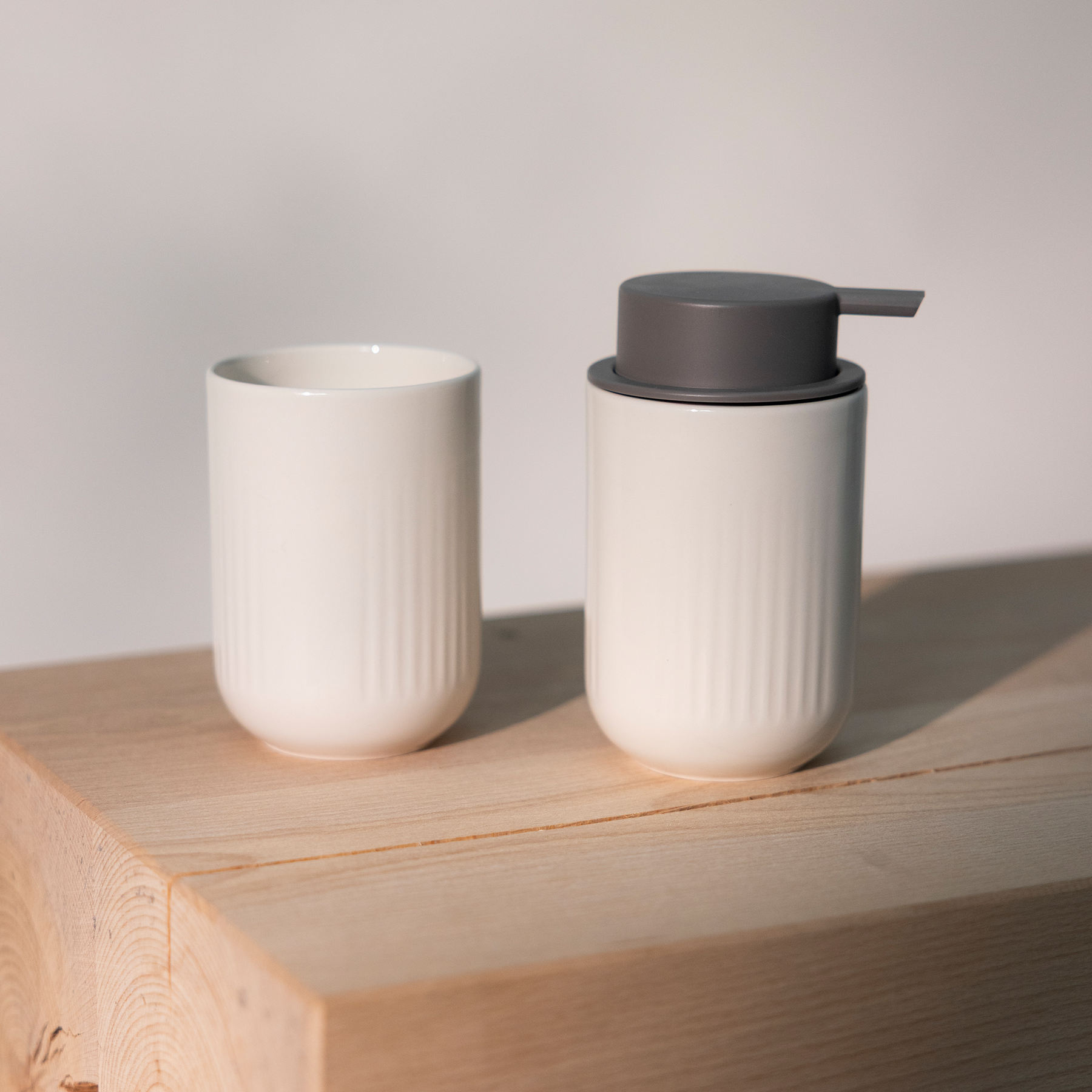 What could be more routine than brushing your teeth. First thing in the morning, last thing in the evening. We all learned this already as children. The ceramic Uoma bathroom products designed by Tuuli Saarelainen bring the greetings from Posio, the world's northernmost ceramics factory, to everyday moments. The surface of Uoma soap dispenser features an stylish white glaze and linear trails.