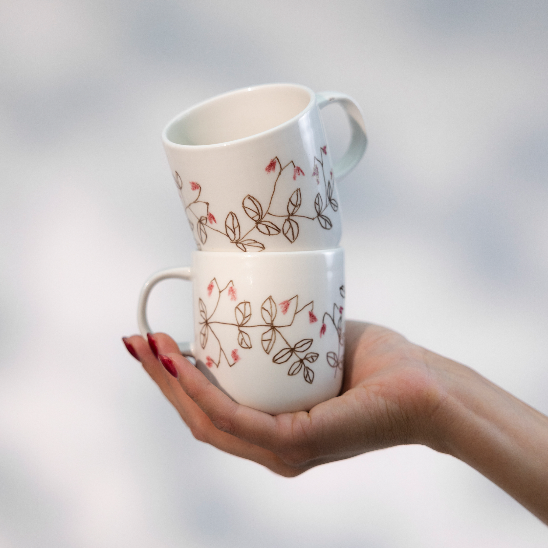 Vanamo plants grow on the surface of moss, intertwined with one another in delicate patterns, creating a blooming carpet. The motifs on Vanamo tableware also continue from one plate to another, as if the table surface were covered with its own blooming forest floor. Combine the mug with other pieces in the series and let the tableware grow like a Vanamo sprout: naturally, smoothly, and beautifully. Vanamo tableware is made in Finland, at the world's northernmost ceramics factory in Posio.