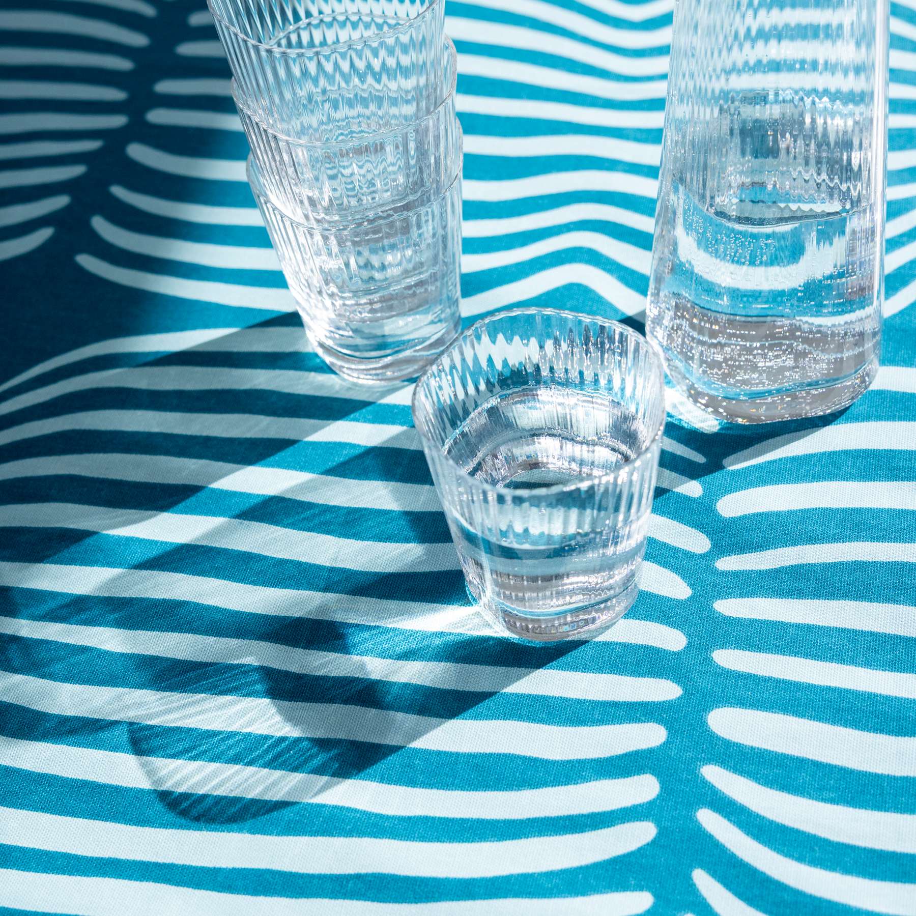 Fields of ripe grain swaying in the summer breeze is a hypnotic sight that’s unique to the north. When you stop to look at them for a long time, they begin to resemble a soothingly billowing ocean. Designed by Minna Niskakangas, the graphic pattern is now available in a turquoise colour borrowed from the ocean's waves. Whether you’d like to drift off to sleep or enjoy your morning coffee surrounded by fields of grain, you’ll find the Vilja (Grain) pattern on everything from fabrics to table setting textiles.