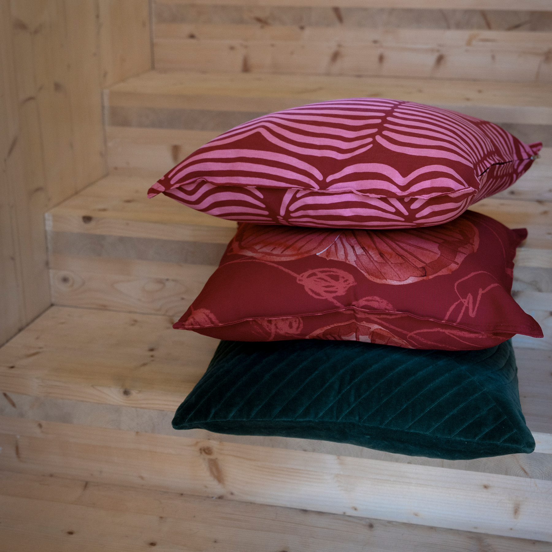 The Vilja cushion cover is 45x45 cm in size so it is perfect with Pentik's 48x48 cm inner cushion, which will make the cushion look full with no extra space in the corners. Made of 100% cotton. Machine washable at maximum 60 degrees with a gentle program.
