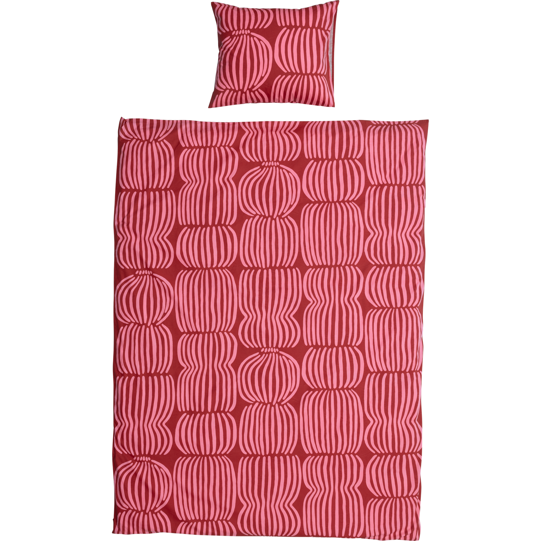 The size of the Vilja duvet cover is 150x210 cm and the size of the pillowcase is 50x60 cm. It's made of 100% cotton percale (TC200).