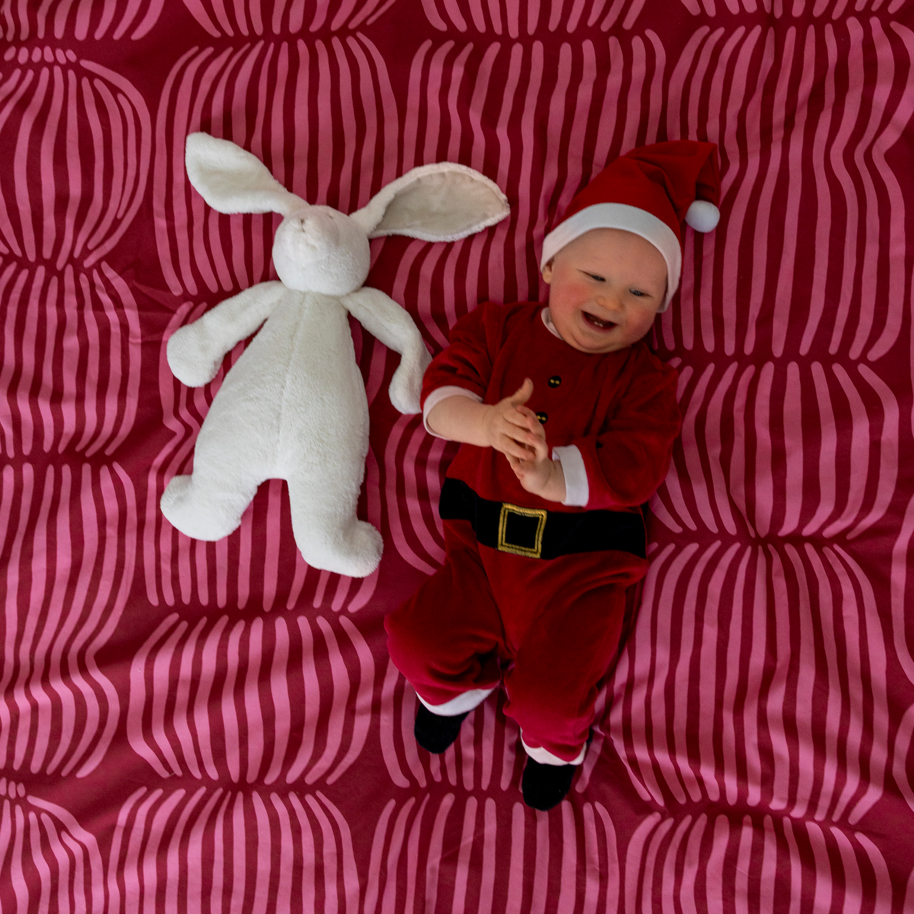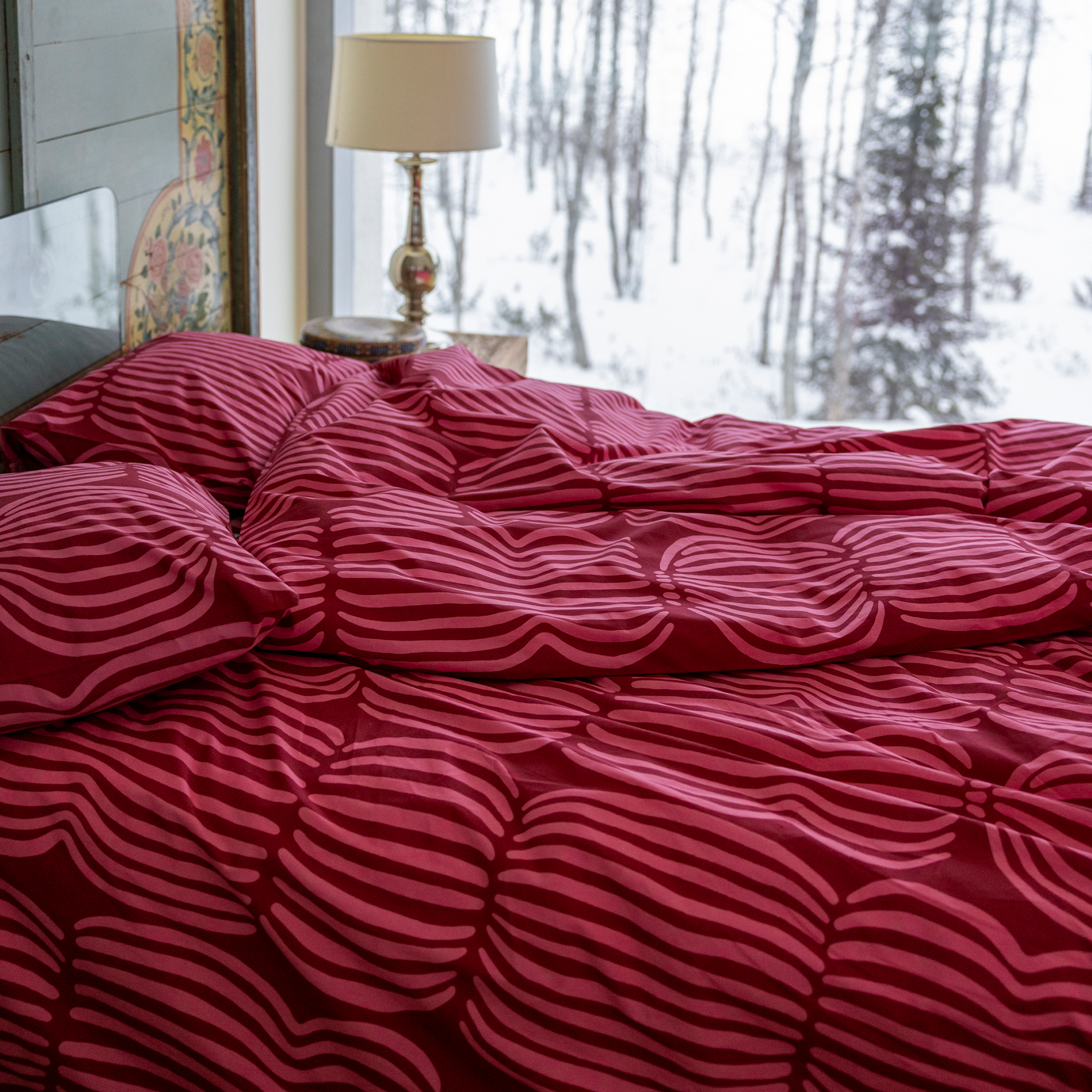 Sun-dappled fields of grain are a hypnotic sight in the north. Now the same experience can be brought home in the form of the pattern of Minna Niskakangas' design. Whether you want to bathe in a field of grain or enjoy a coffee in the middle of one, the pattern is available in everything from sheets to tablecloths and dishcloths. Now the collection is also available in red.